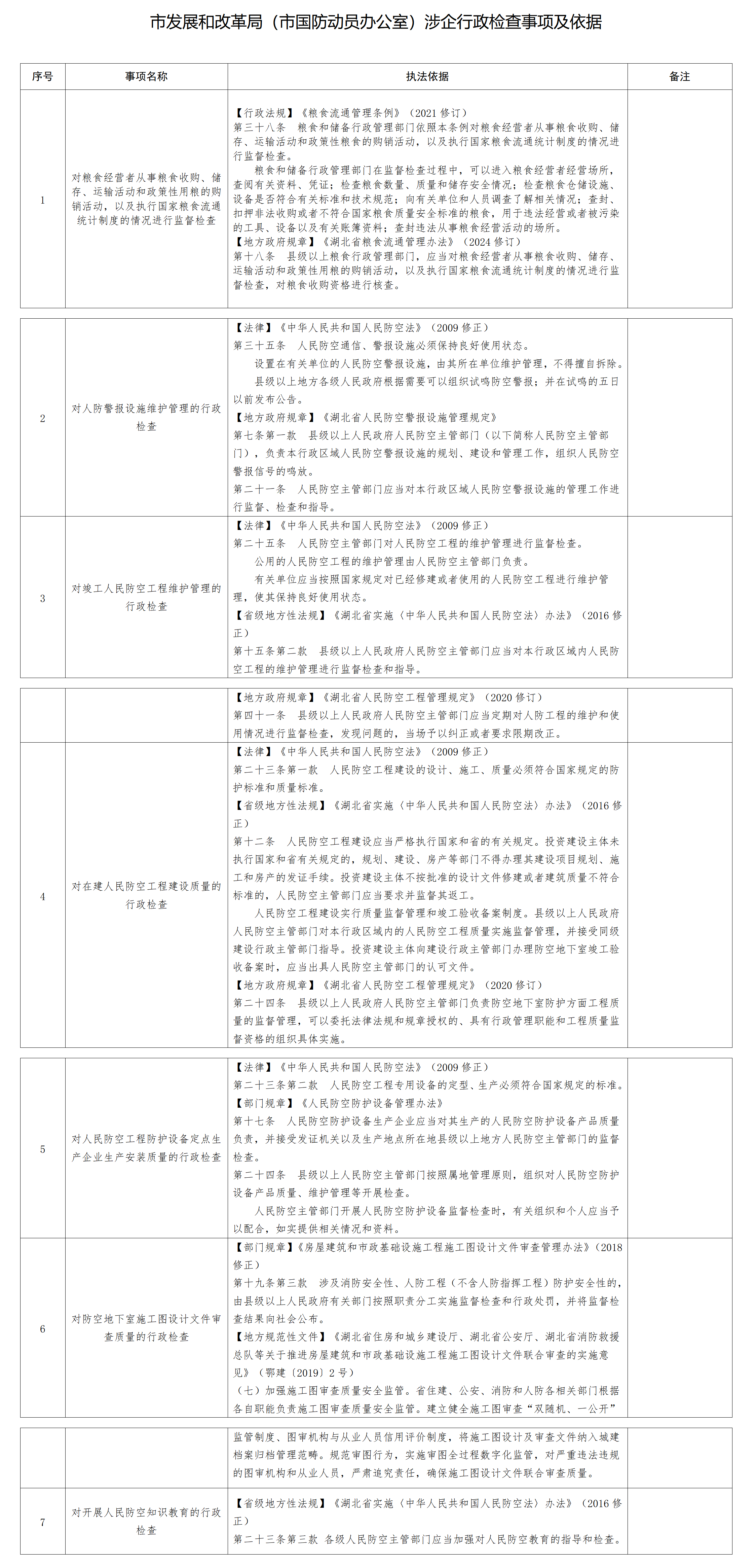 市发展和改革局(市国防动员办公室)涉企行政检查事项及依据