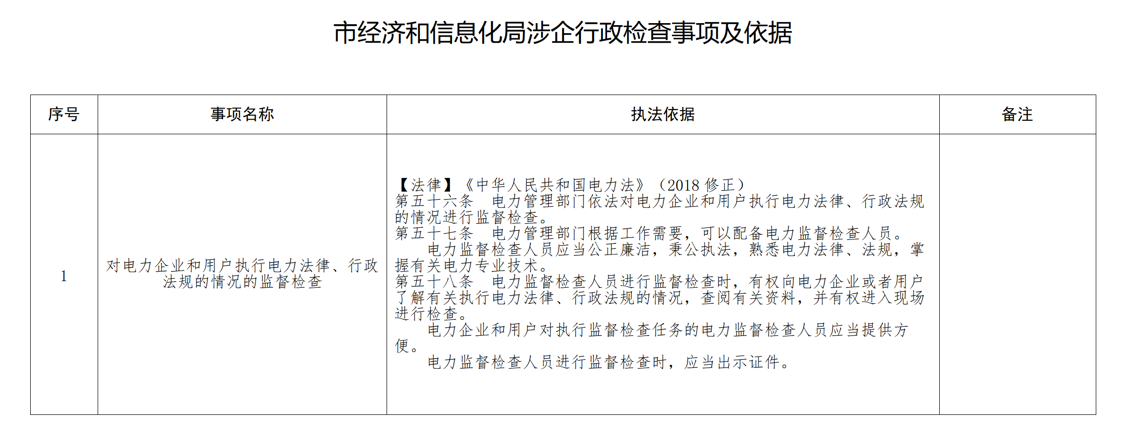 市经济和信息化局涉企行政检查事项及依据