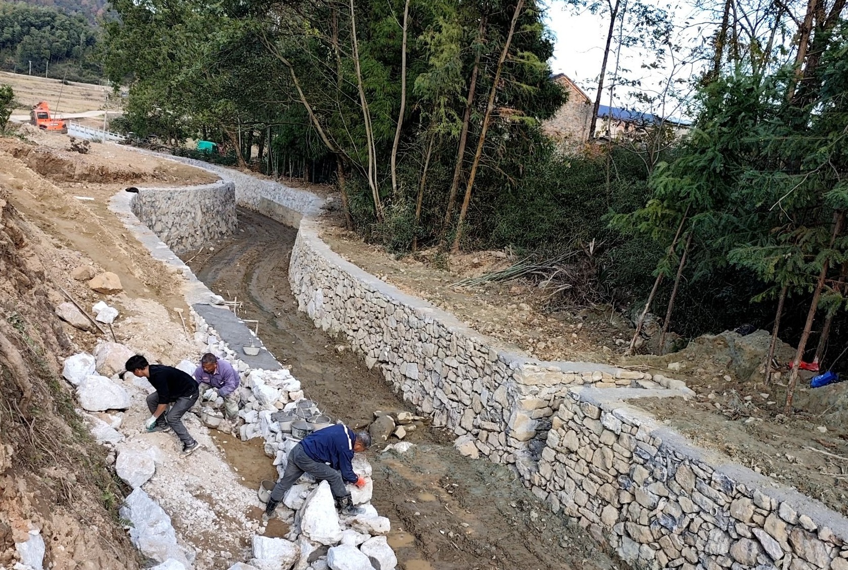 “这几天天气冷,大伙儿干活时既要注意安全,也得再加把劲,争取这两天把这面挡土墙砌好。”1月18日,记者走进刘仁八镇腰村村邹文湾沟渠护砌项目施工现场,只见村民们紧张有序地忙碌着,一块块砖石在手中垒起,一道沟渠正在加紧砌筑。