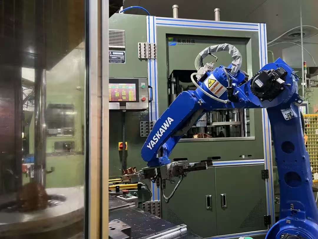 车间内,机械臂上下翻飞,精准完成插槽、绕线、检测等复杂工序。在全自动生产线上,上绕线槽环节的三个提升器协同作业,将定子铁芯的操作效率提升了30%以上。