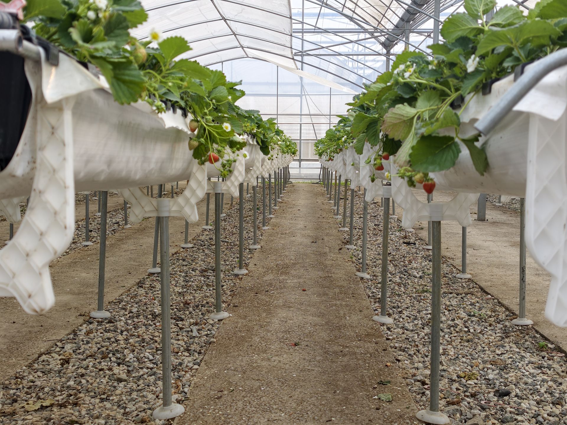 “传统地栽草莓容易遇到连作障碍和土传病害等问题,而我们采用的空中栽培模式,以基质代替土壤,从根本上切断了土传病虫害的传播途径。”技术负责人胡文锋轻轻托起一株草莓介绍道,这些草莓的根系生长在特制栽培槽中,通过水肥一体化系统精准供给养分,确保每一株草莓都能获得均衡的营养。