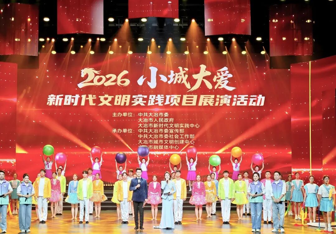 会议还进行了2026年小城大爱新时代文明实践展演活动。潘小进等市领导为20个新时代文明实践分中心代表授旗。
