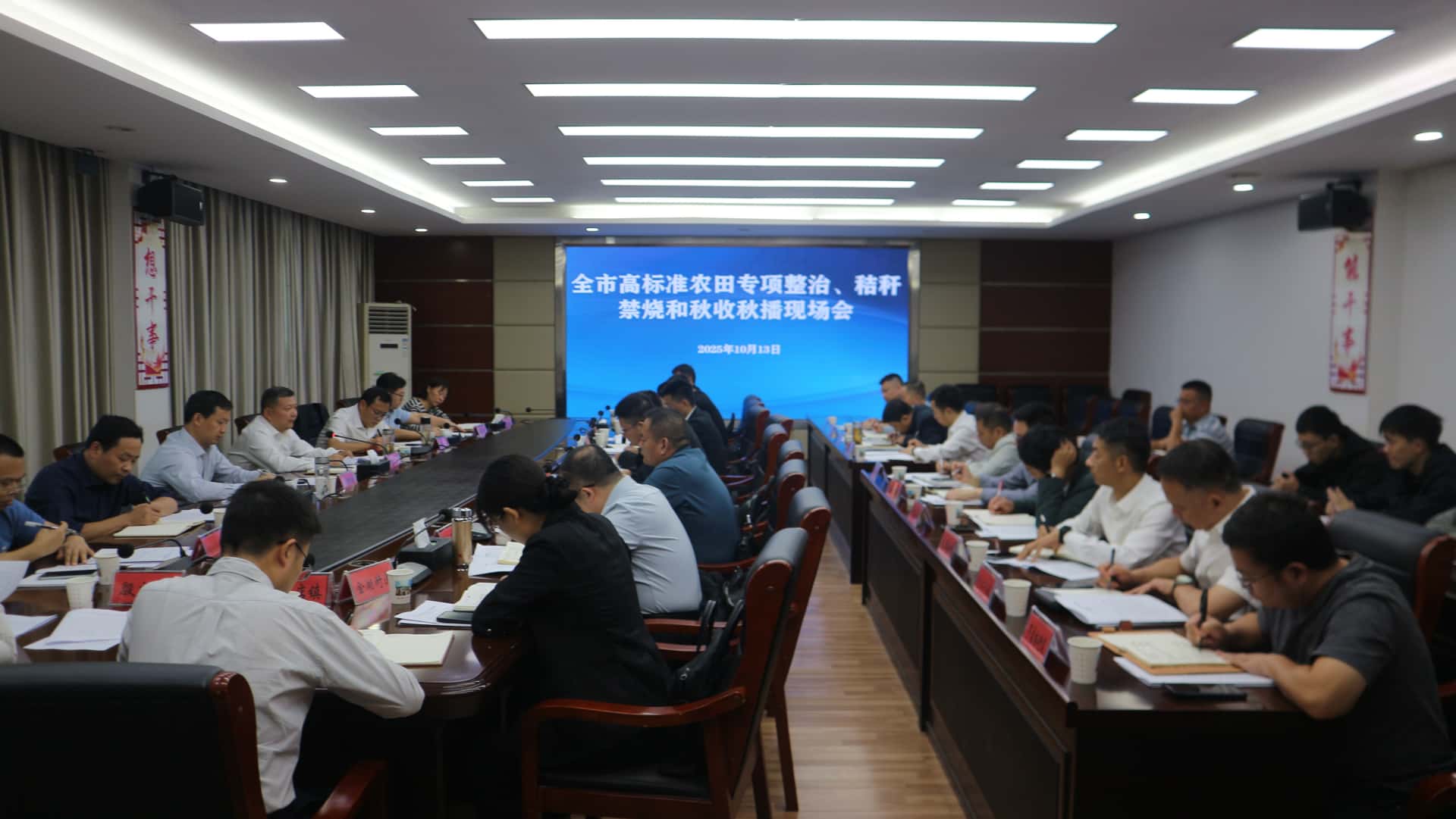 会议指出,要提高政治站位、扛牢主体责任,坚决守牢粮食安全底线。要严格按照省、市部署要求,扎实推进高标准农田专项整治、秸秆禁烧、秋收秋播等重点工作。要锚定目标任务、坚持硬账硬结,全力抓好抓实秋冬季农业生产重点工作。要全力推进高标准农田整治整改,精准排查问题短板,加快整改进度,规范做好项目竣工验收,着力建设“地平整、土肥沃、田成方、路相通、渠相连、旱能灌、涝能排”的高标准农田;要全力抓实秸秆禁烧工作,强化宣传引导与教育普及,加密巡查频次,严格督导检查,积极探索并推广秸秆资源化利用新模式;要全力推进秋冬农业开发,加快秋收秋播进度,健全耕地撂荒长效整治机制,切实守住耕地红线。
