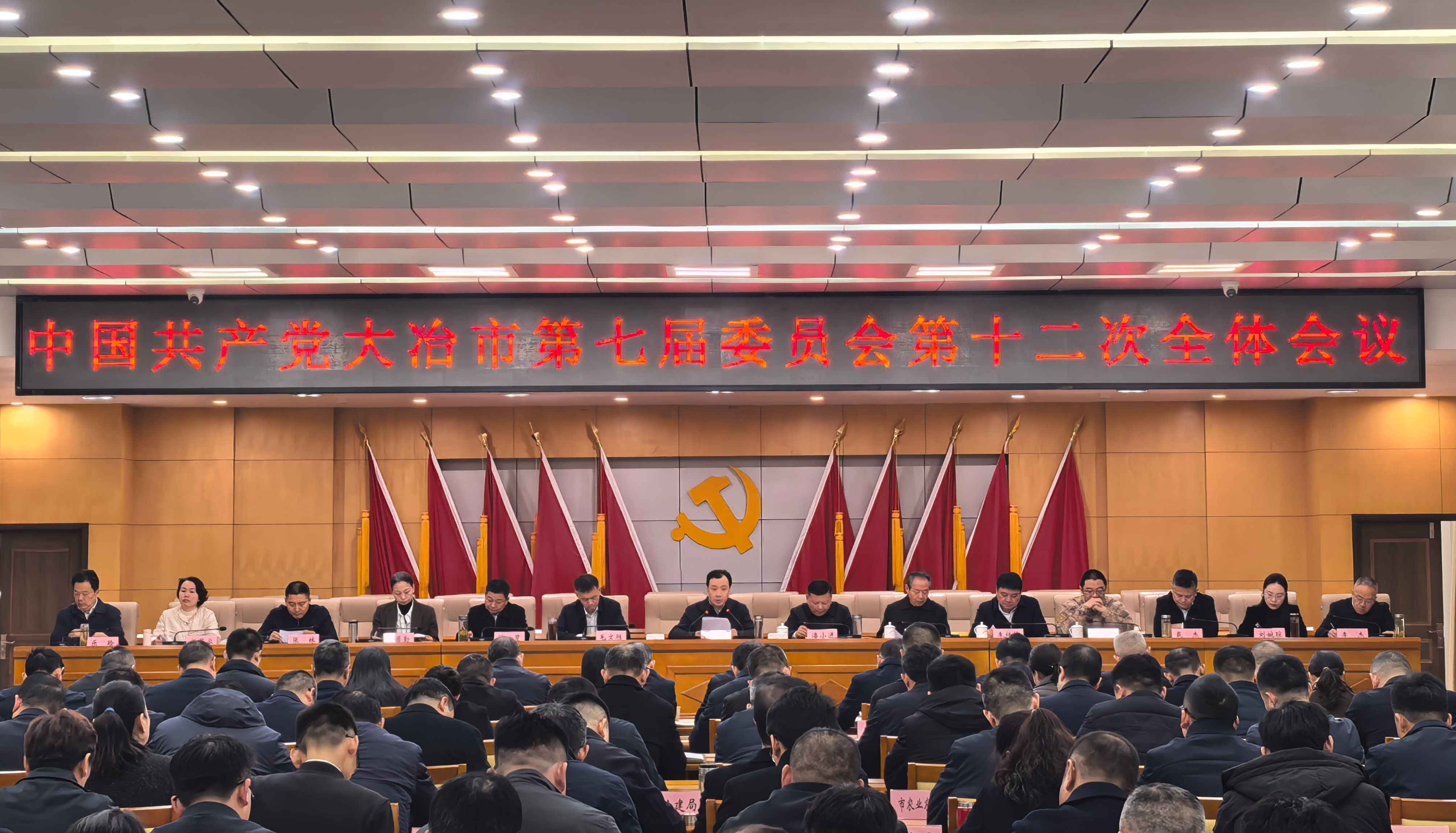 12月17日,中国共产党大冶市第七届委员会第十二次全体会议举行。全会深入学习贯彻党的二十届四中全会精神和习近平总书记考察湖北重要讲话精神,认真落实省委十二届十一次全会和黄石市委十四届八次全会部署要求,动员全市上下鼓足干劲、奋发进取,攻坚突破、转型跨越,在“十五五”新征程上,持续推进“五大攻坚”、加快建成“五个示范”,确保武鄂黄黄同城化发展重要增长极建设取得决定性进展,当好全省县域高质量发展“排头兵”,迈入全国县域50强,为黄石加快建成武汉都市圈重要增长极、服务推动全省支点建设作出更大贡献,奋力书写中国式现代化大冶新答卷。