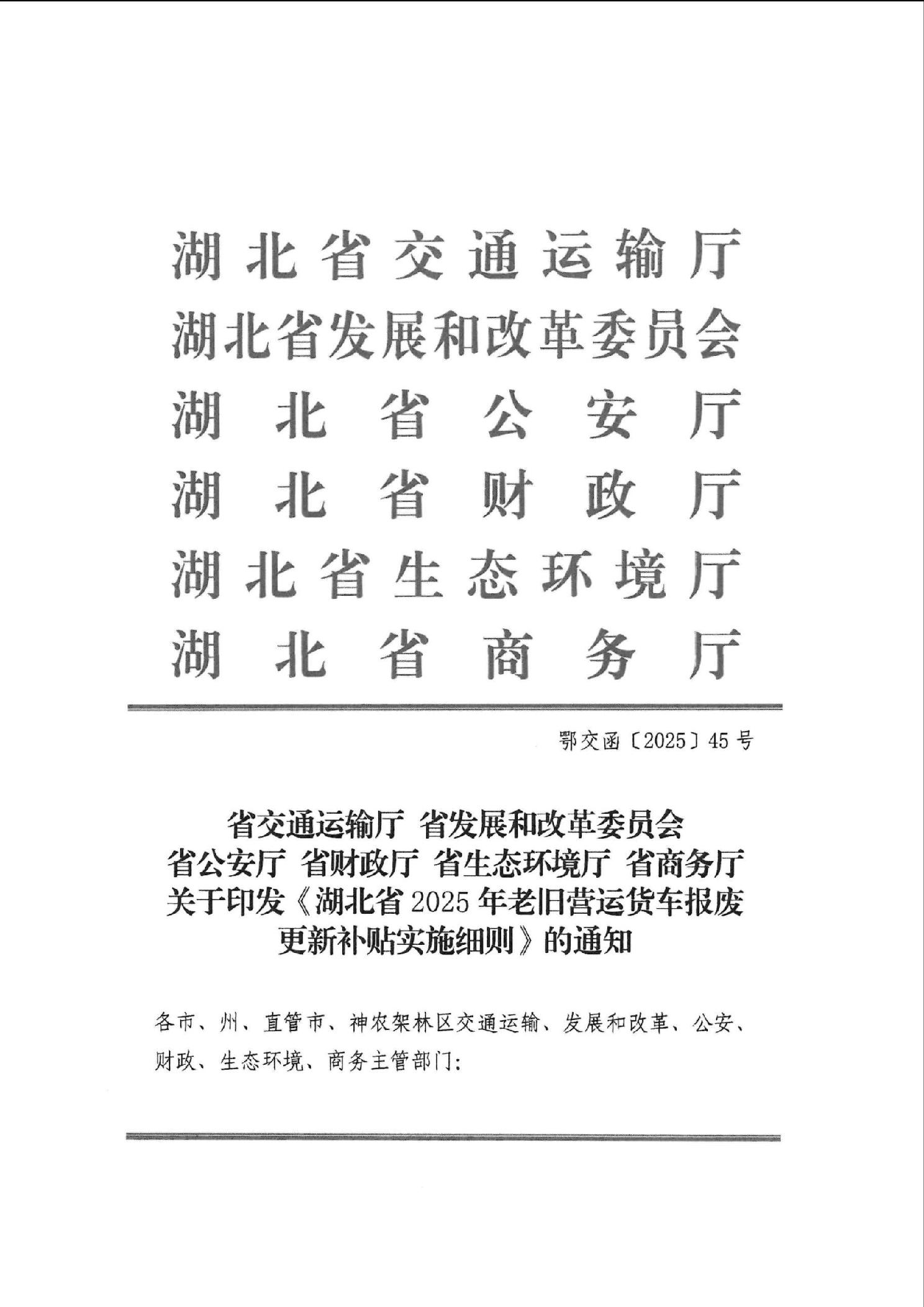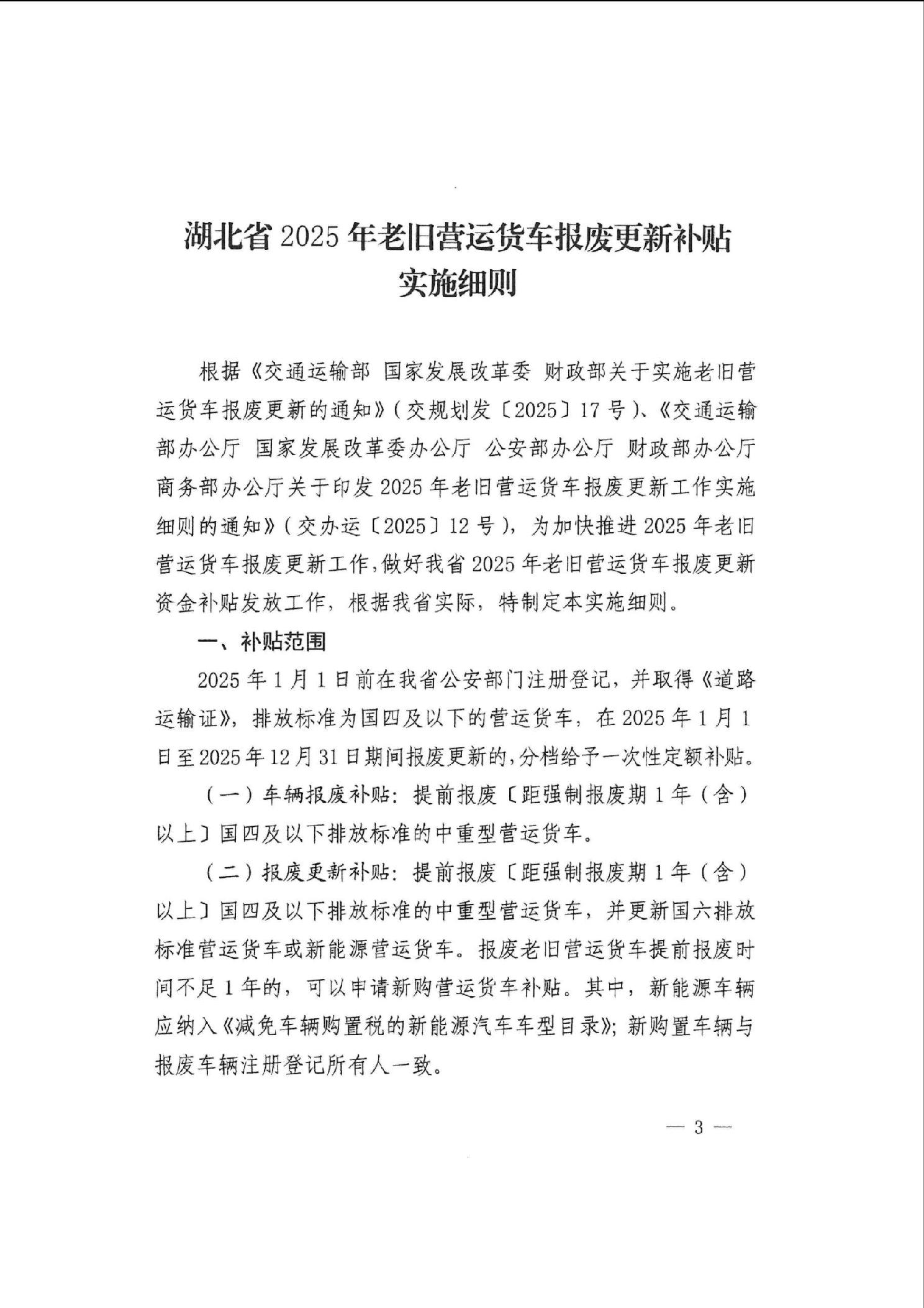 湖北省2025年老旧营运货车报废更新补贴
