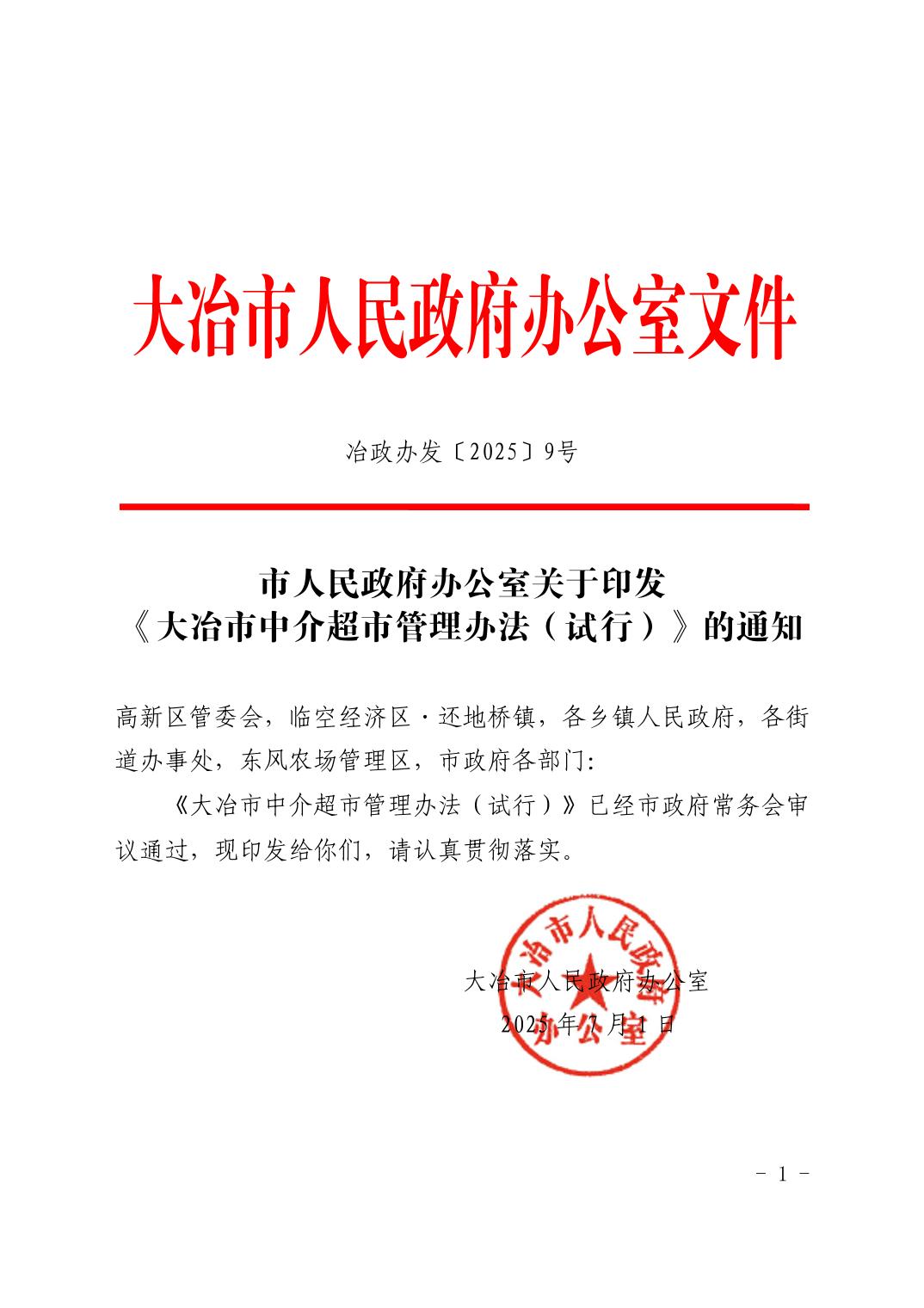 市人民政府关于印发《大冶市中介超市管理办法(试行)》的通知