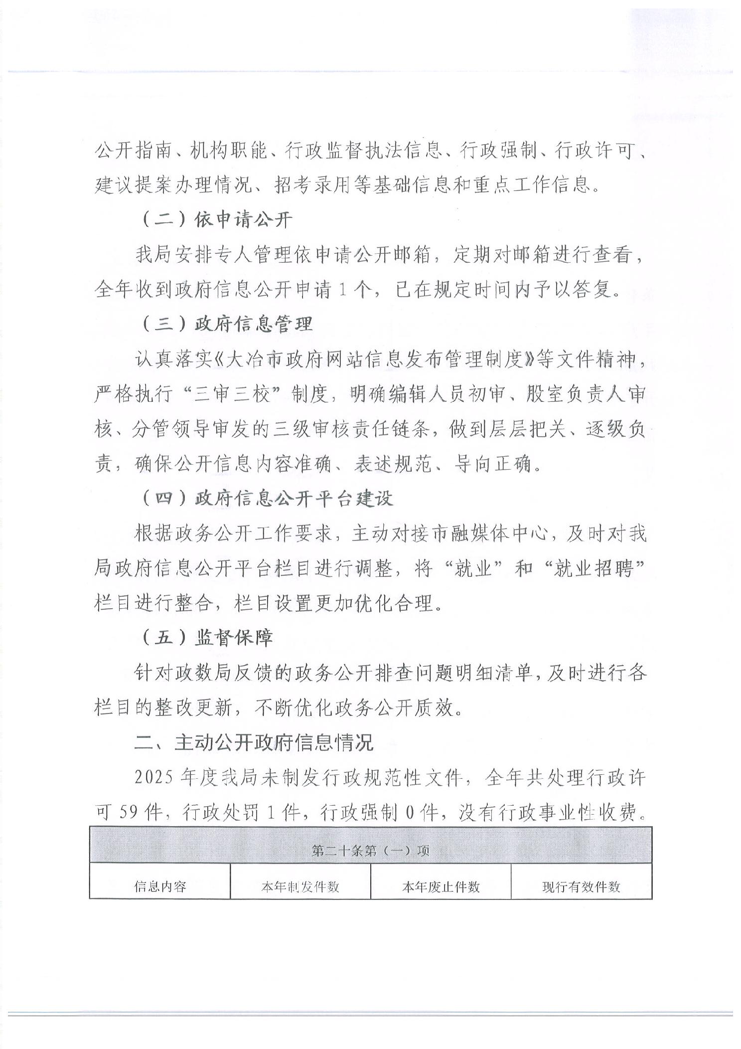 大冶市人力资源和社会保障局2025年度政府信息公开工作年度报告