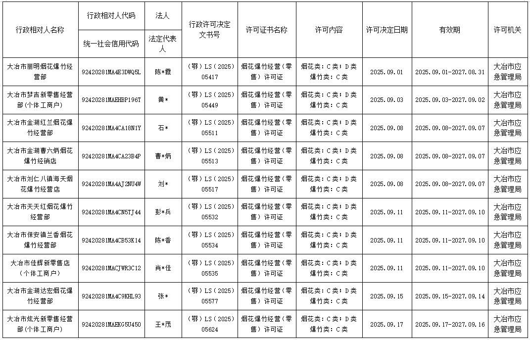 大冶市应急管理局2025年行政审批事项公示(八)