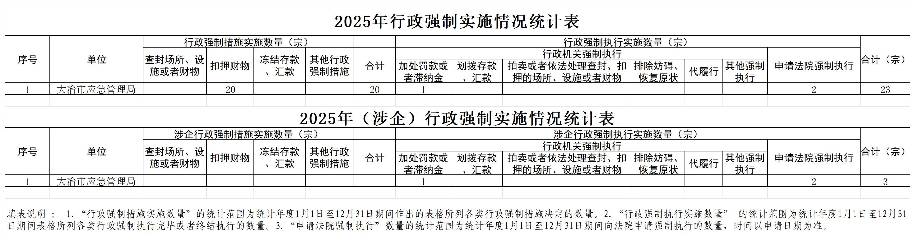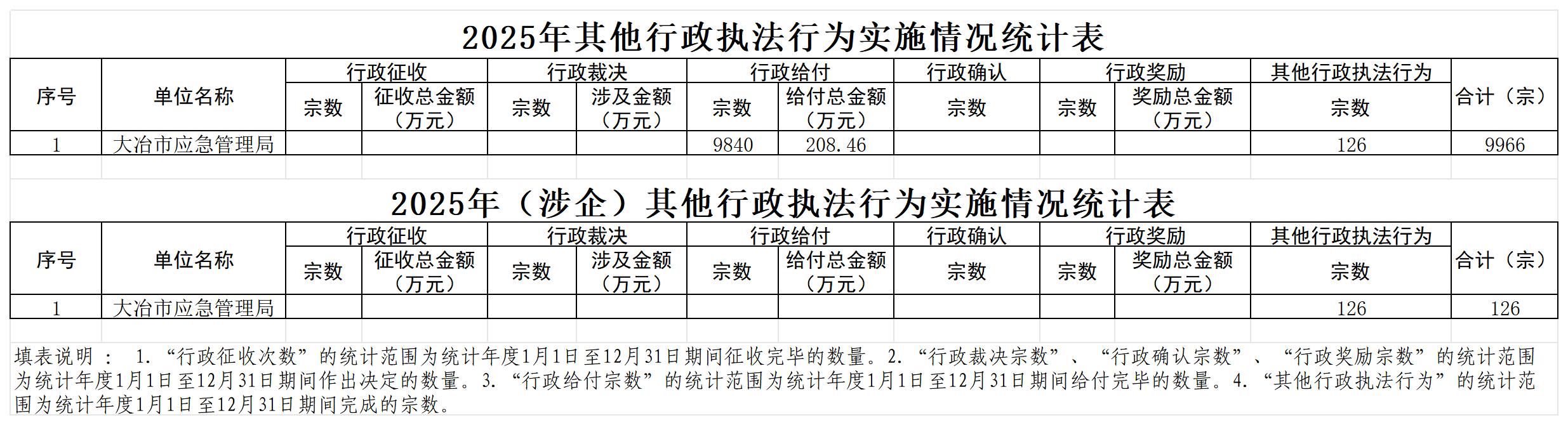 大冶市应急管理局2025年度行政执法统计年报