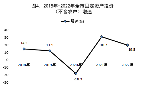 全年全市(全域口径)固定资产投资(不含农户)比上年增长19.5%。