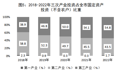 在全市固定资产投资(不含农户)中,第一产业投资额比上年增长481.2%,占全市固定资产投资(不含农户)比重为1.7%;第二产业增长11.4%,占比43.5%;第三产业增长18.1%,占比54.8%。