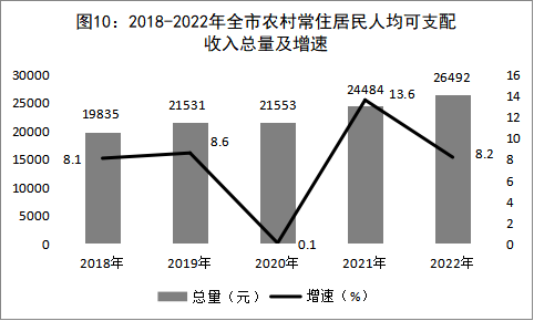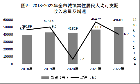 城乡居民收入稳定增长。全年全市城镇常住居民人均可支配收入49601元,比上年增长6.7%;农村常住居民人均可支配收入26492元,比上年增长8.2%。