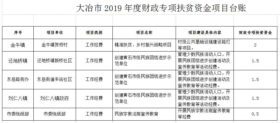 根据《湖北省省级少数民族资金管理办法》鄂财行发【2018】49号的文件精神,我部于2019年组织实施了精准扶贫、乡村振兴战略及民族团结进步创建示范单位等工作。东岳街道车站社区等4个单位承担了该项目:对口帮扶贫困村1个,创建黄石市级民族团结进步示范单位3家。