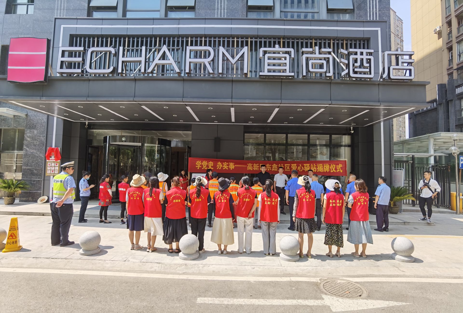 为了给辖区户外劳动者提供帮助和服务,在炎热的夏天清凉度夏,6月25日,东鑫社区“户外职工爱心驿站”在辖区宜尚酒店正式揭牌。