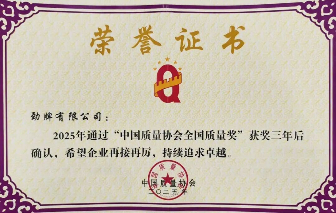 这是一场持续三年的“质量大考”。自2021年首次获奖以来,劲牌公司始终坚持对品质与管理的极致追求。