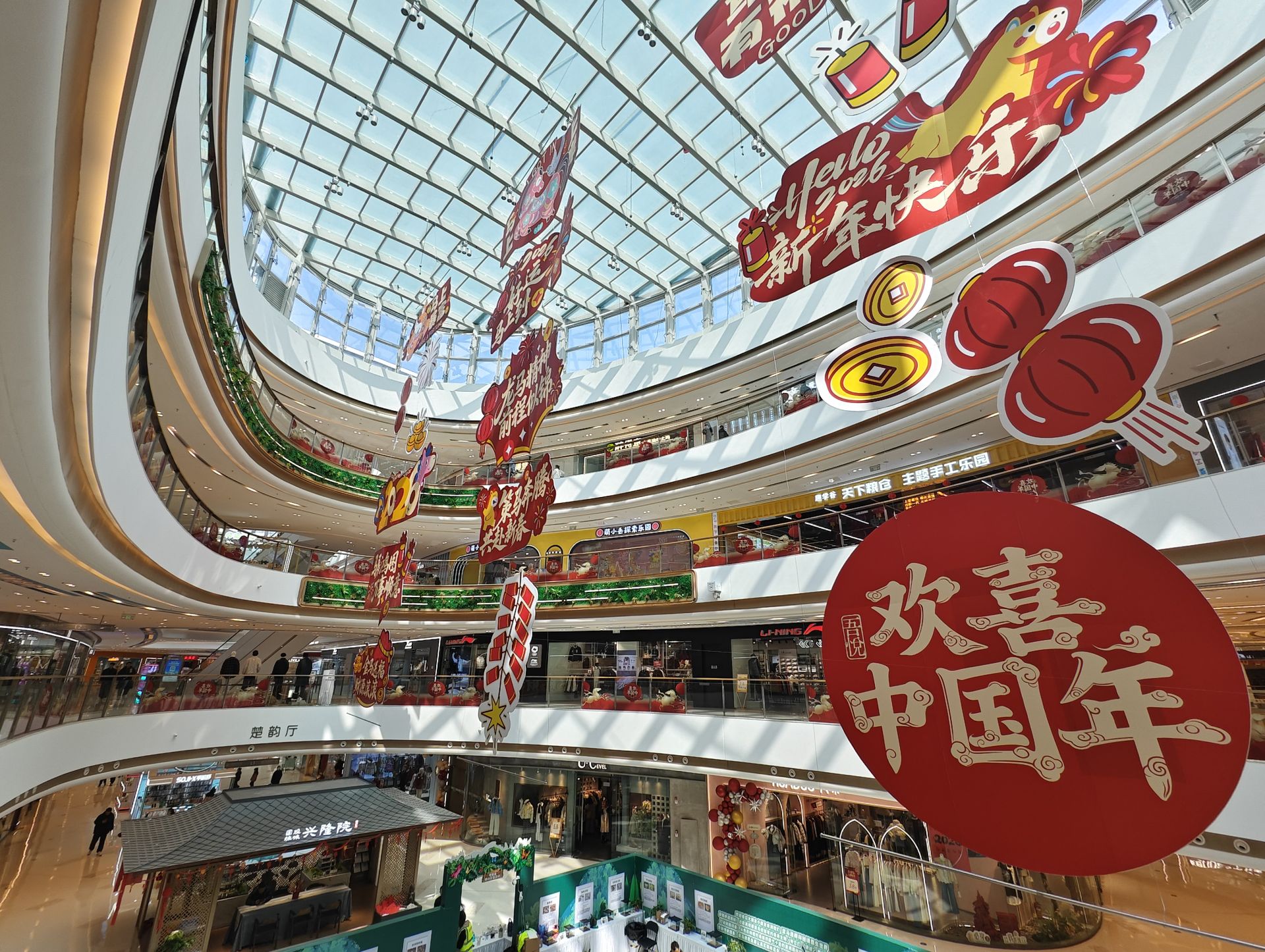 吾悦广场同样年味十足。“欢喜中国年”主题装饰装点全场,缤纷气球相映成趣。据介绍,春节期间,该商场情人节气球雨、非遗贺新春、元宵游园会等活动轮番上演,舞狮、川剧变脸、糖画面人、财神巡游等民俗节目贯穿春节假期。优惠方面,老凤祥、中国黄金等品牌推出满2000减100、满5000减300活动,数码、娱乐、服装、餐饮等业态同步上线满减、团购、满赠福利,会员还可参与全家福拍摄、免费领礼等互动。