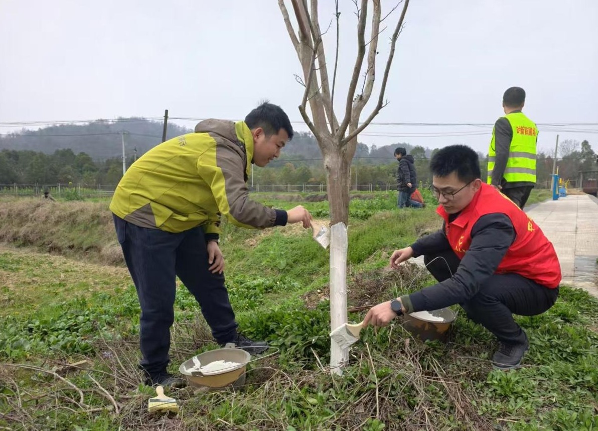 当天,50余名党员干部、志愿者及村民代表齐聚风桥村农耕研学基地,大家分工协作,挥锹挖坑、种下树苗、培土压实、提水浇灌,现场成功栽种砂糖橘、桑葚、蓝莓等果树100余株。活动中,志愿者们还对沿线树干进行涂白处理,为树木穿上“防护衣”。同时,每一位参与者都积极参与果树认养,并亲手挂上专属认养牌。