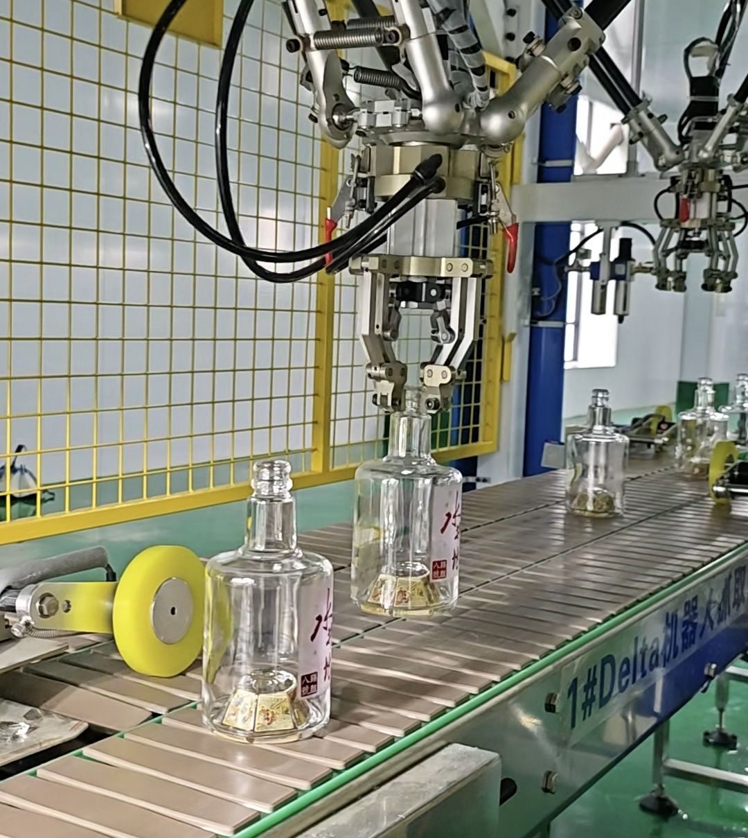 走进新产线车间,玻璃熔融、制瓶成型、精深加工、智能检测等工序一气呵成,智能机械手灵活作业,AI检测设备实时对产品进行高精度扫描,整条生产线高效有序。相较于传统玻璃生产车间,这里人员少、自动化程度高,生产全过程精准可控。