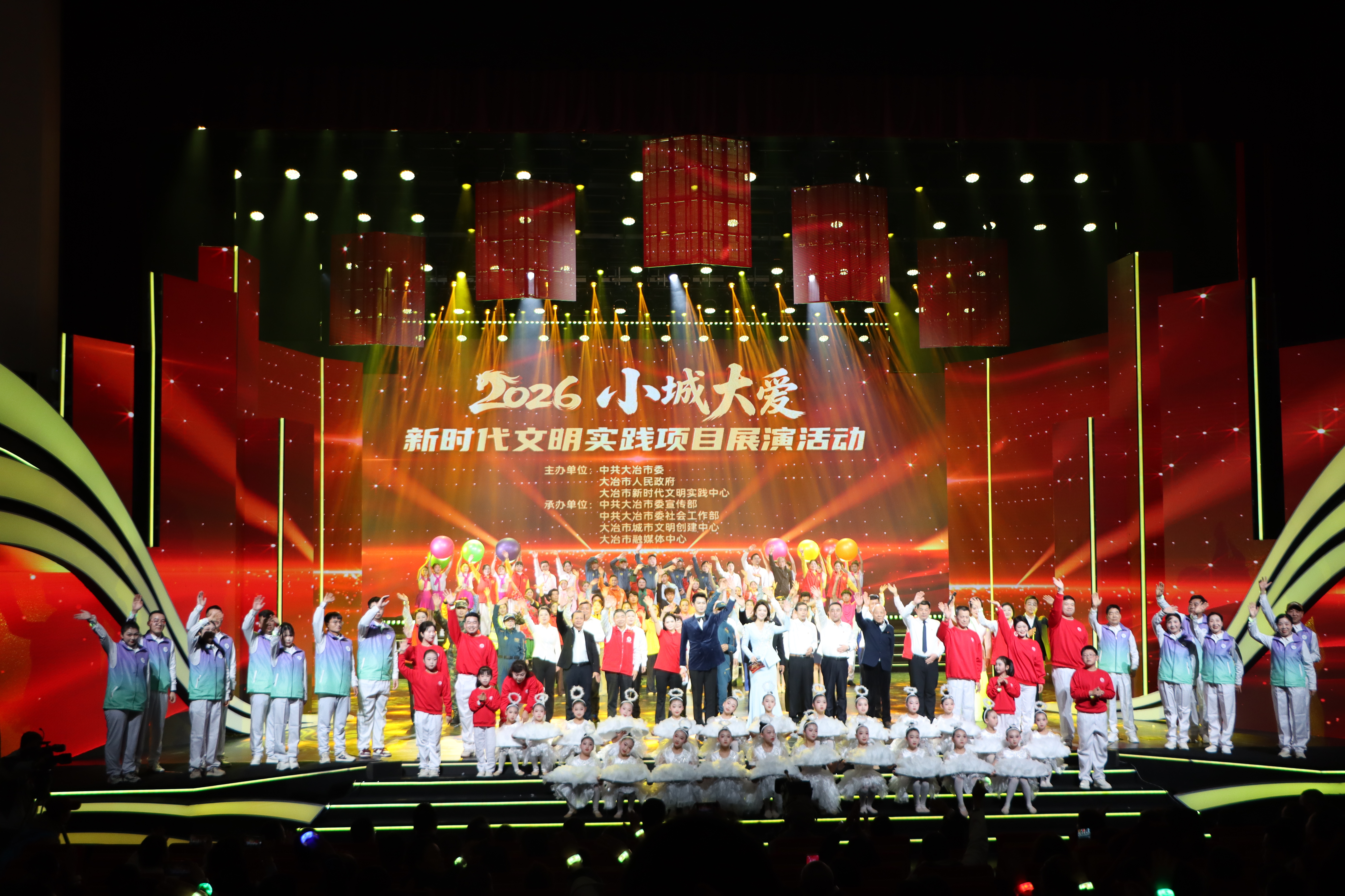 会议还进行了2026年小城大爱新时代文明实践展演活动;潘小进等市领导为20个新时代文明实践分中心代表授旗。