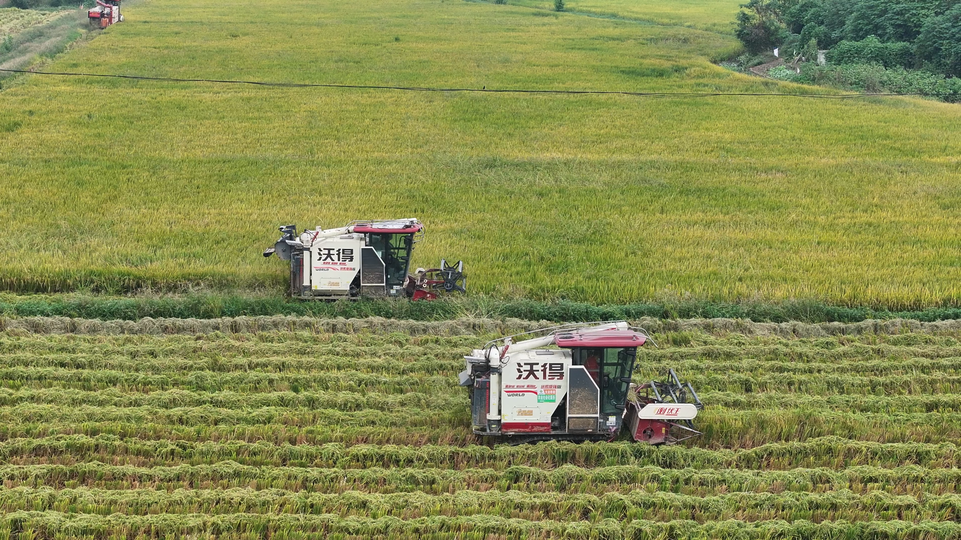 “今年又是一个丰收年,水稻亩产预计比去年增加百余斤,可达1300斤。眼下丰收在望,我打心底里高兴。”望着沉甸甸的稻谷,种粮大户蔡建辉喜上眉梢,“今年我种了4200亩水稻,每天有6台收割机分片作业,目前已收2000多亩,月底能全部收完。并且收割的稻谷当天就由超丰米业收购,销路不愁。全程机械化种植不仅效率高,还能同步完成秸秆粉碎还田,既省工又环保。”