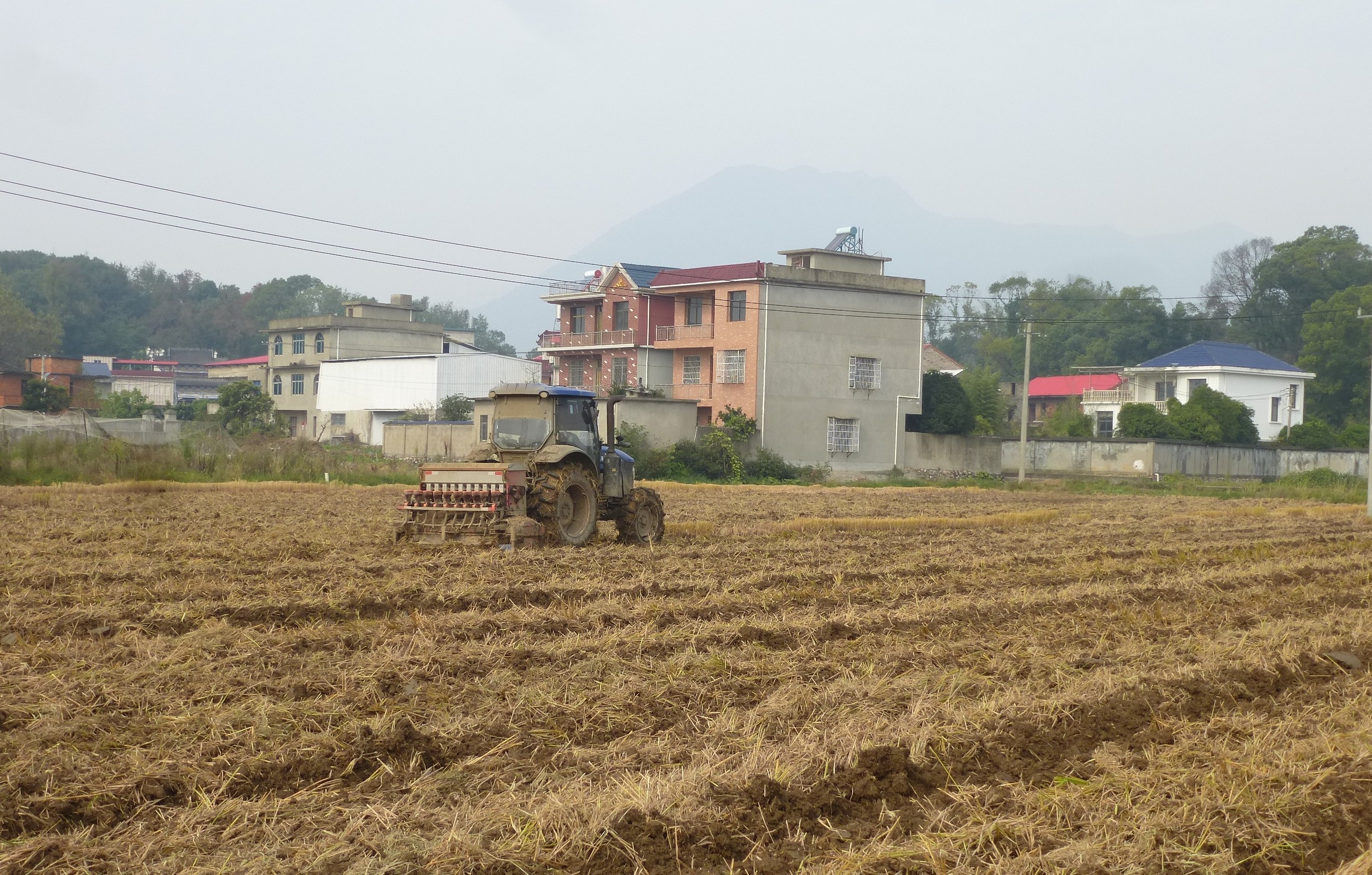 10月29日,大箕铺镇小箕铺村马兴湾南江畈上,两台油菜种肥同播机在连片农田里匀速行驶。机器所到之处,翻耕、下种、覆土等工序一气呵成,田面平整且种子分布均匀。