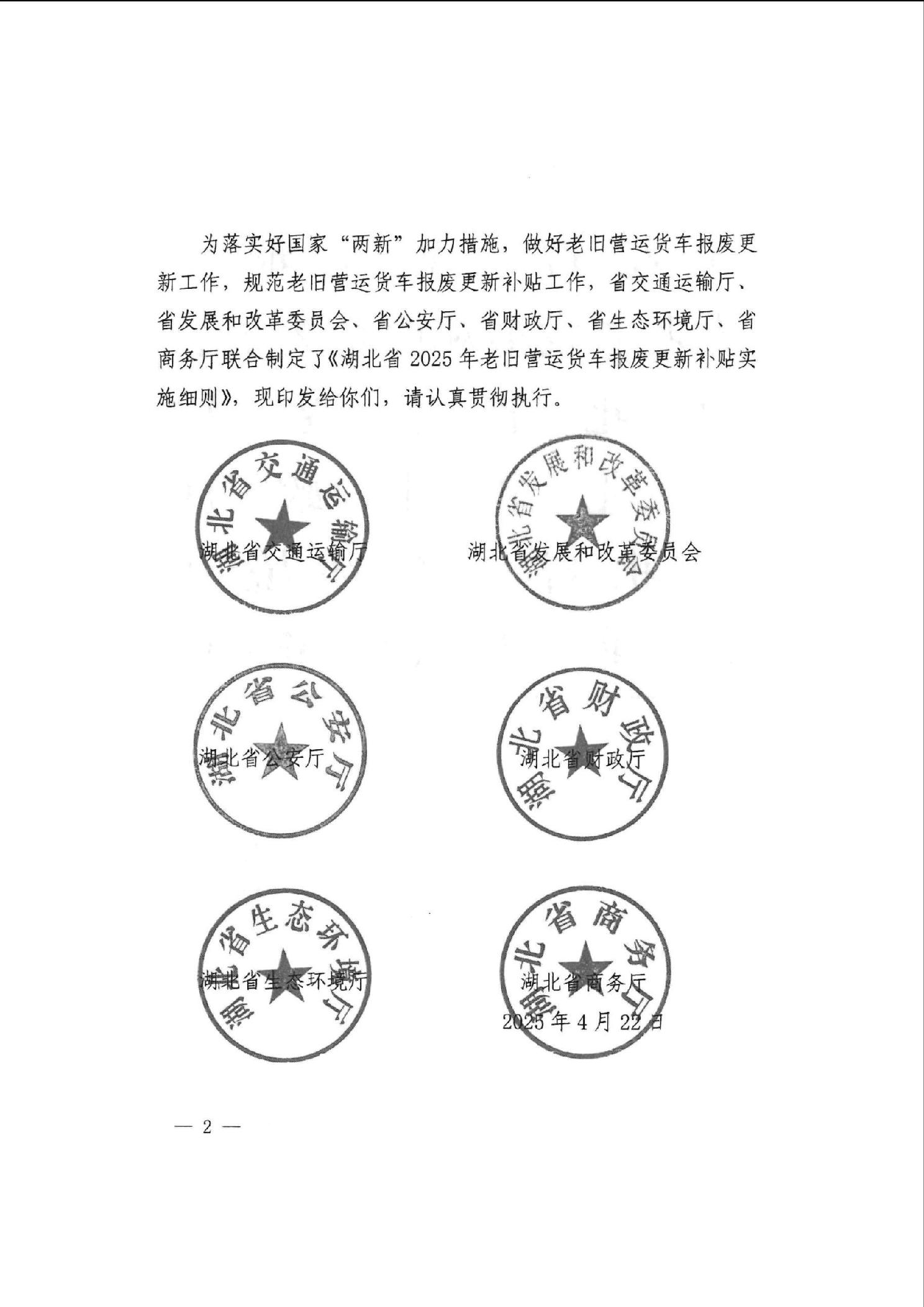 湖北省2025年老旧营运货车报废更新补贴