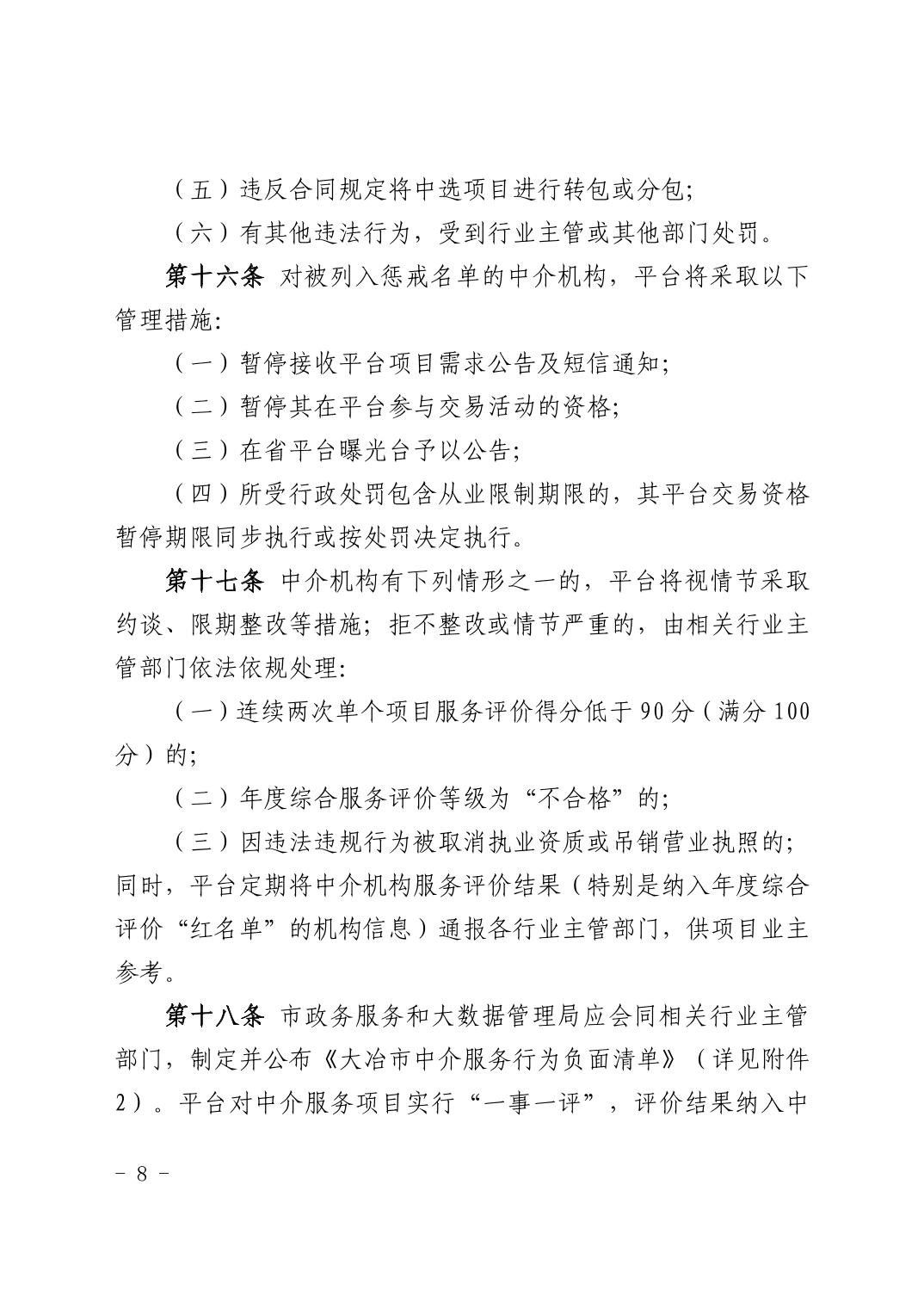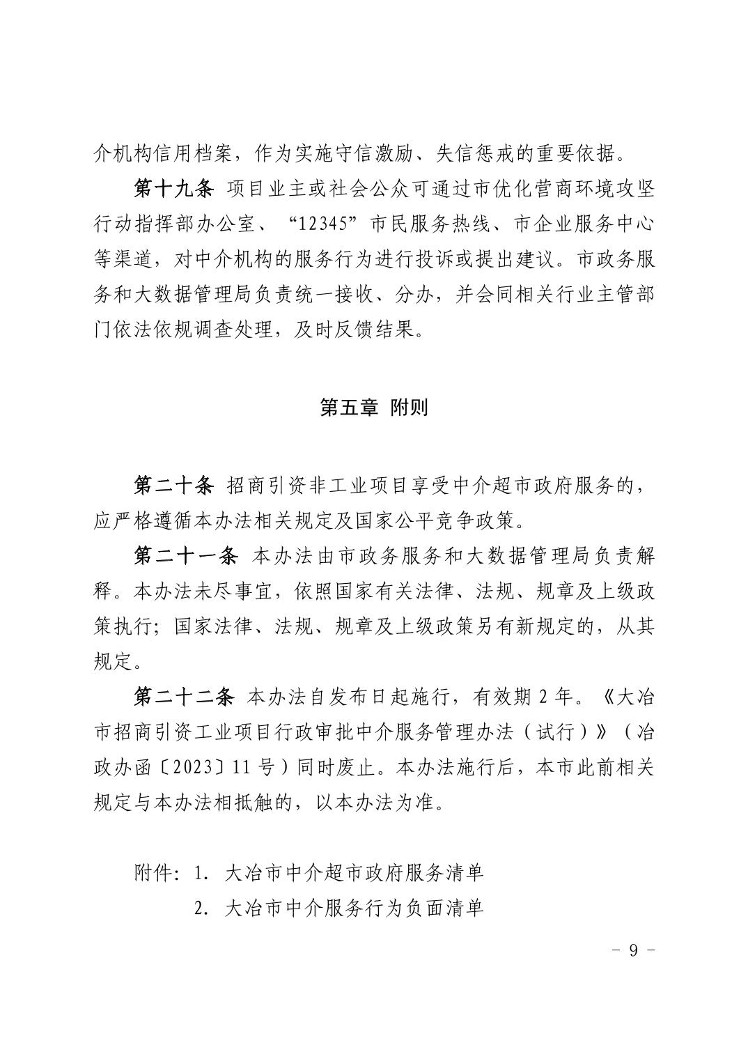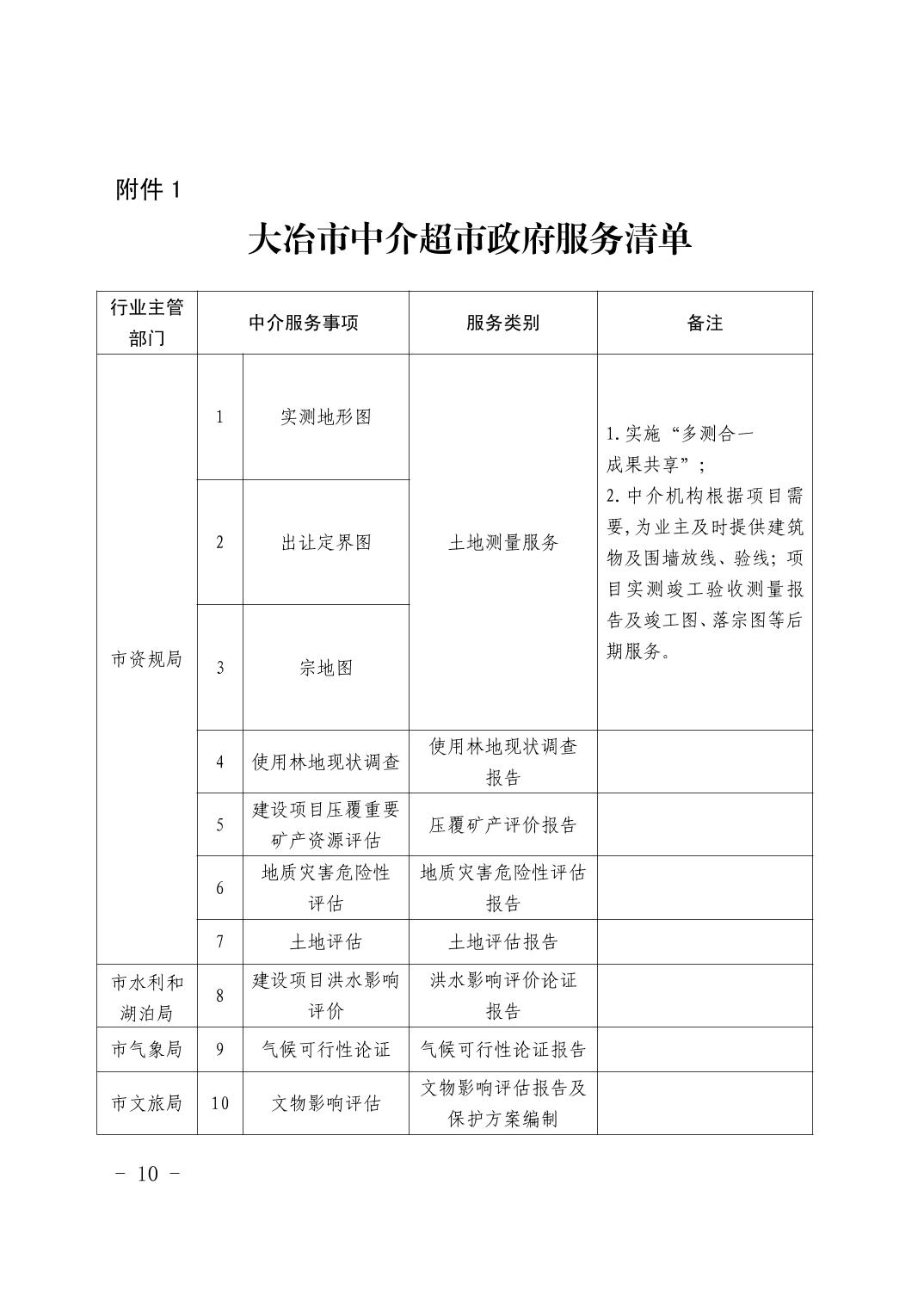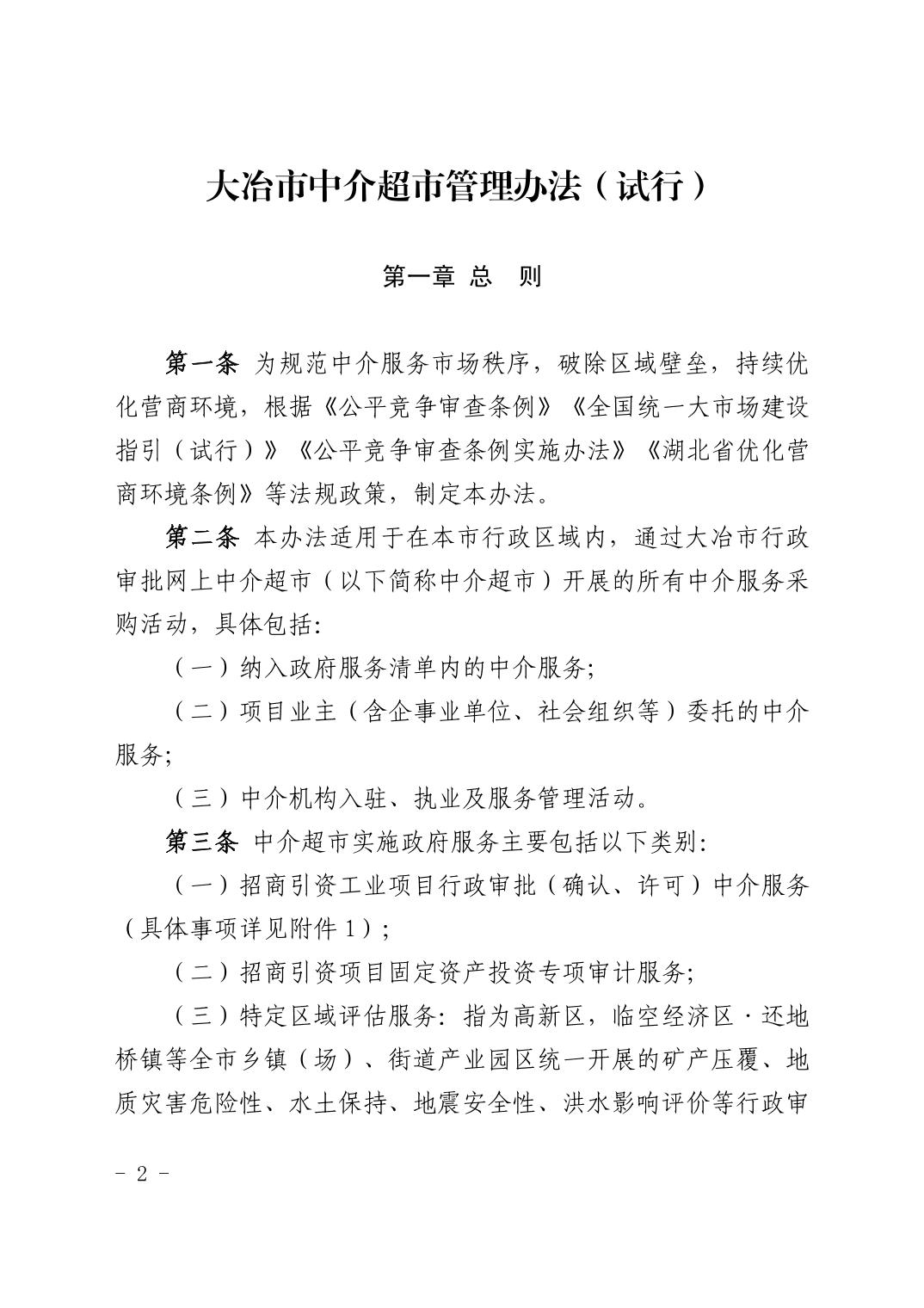 市人民政府关于印发《大冶市中介超市管理办法(试行)》的通知
