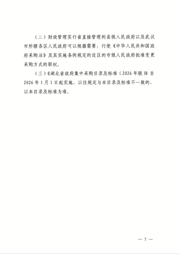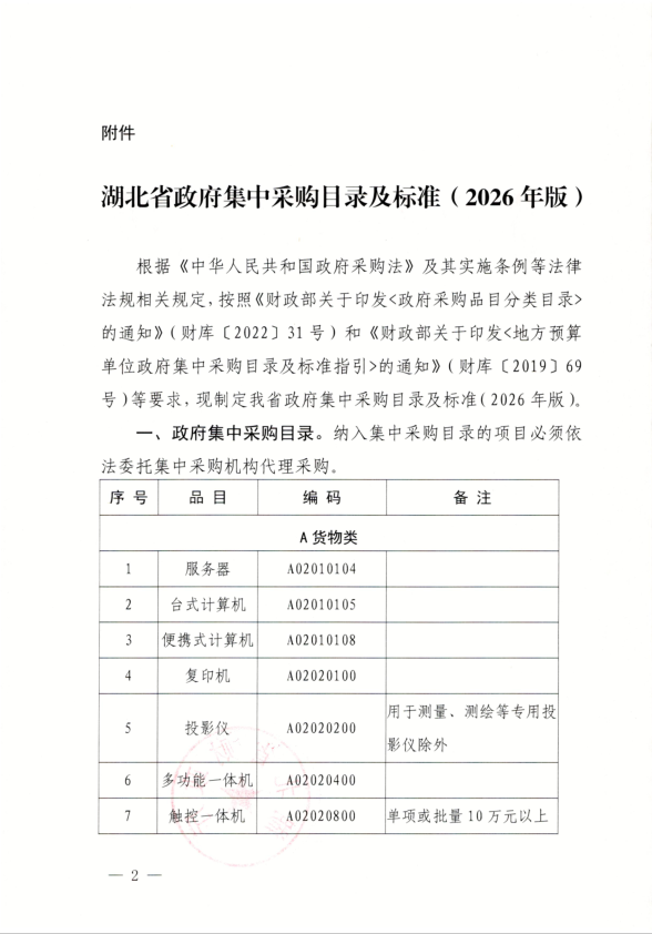 关于印发湖北省政府集中采购目录及标准(2026年版)的通知
