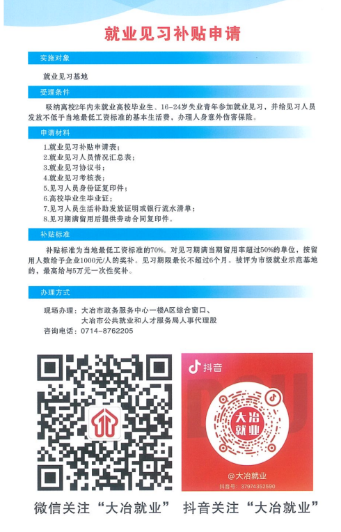 大冶市就业见习补贴申领服务指南