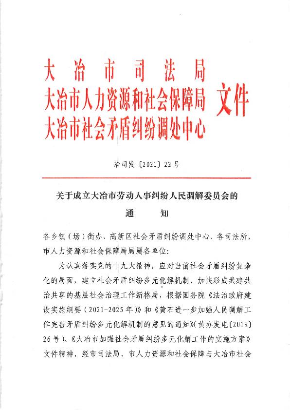 关于成立大冶市劳动人事纠纷人民调解委员会的通知1.jpg