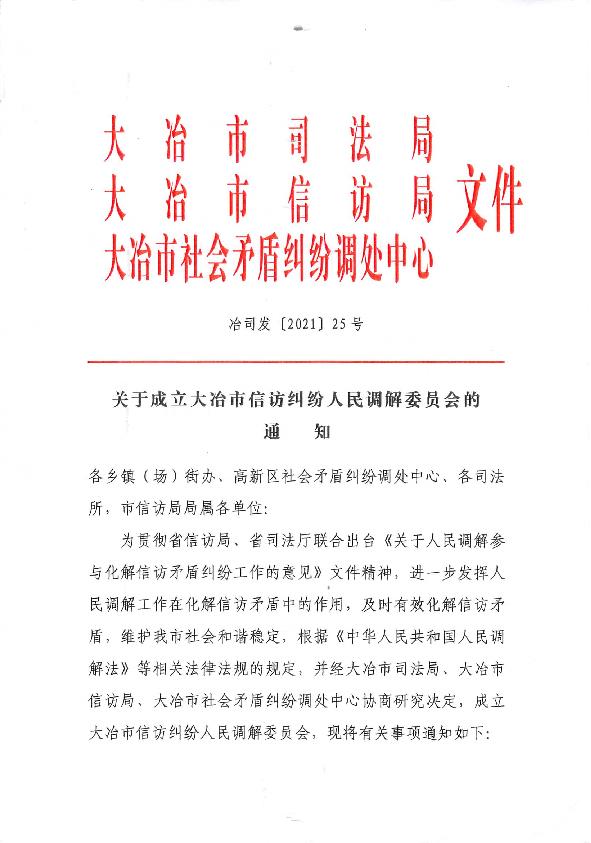 关于成立大冶市信访纠纷人民调解委员会的通知1.jpg