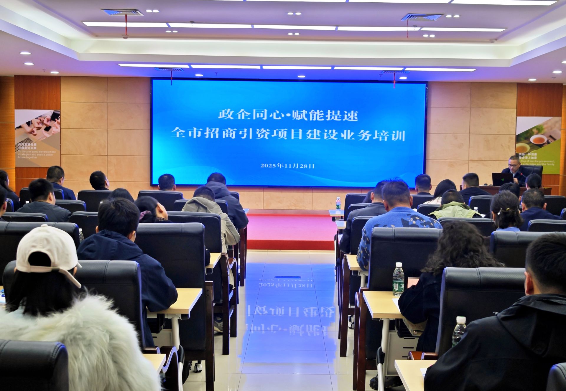 11月28日,全市招商引资项目建设业务培训会在市政务服务中心召开。本次培训以“精准服务促建设,政企协同提效能”为主题,旨在优化营商环境,提升项目服务效率,破解项目报建、审批和建设中的堵点难点,增强企业投资信心。