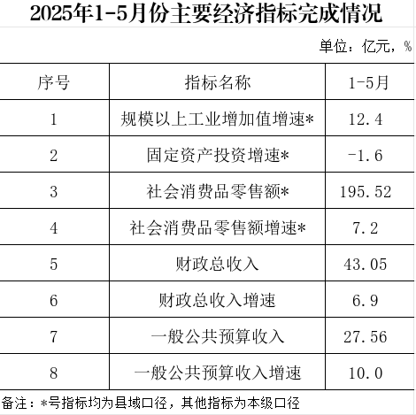 2025年1-5月份主要经济指标完成情况