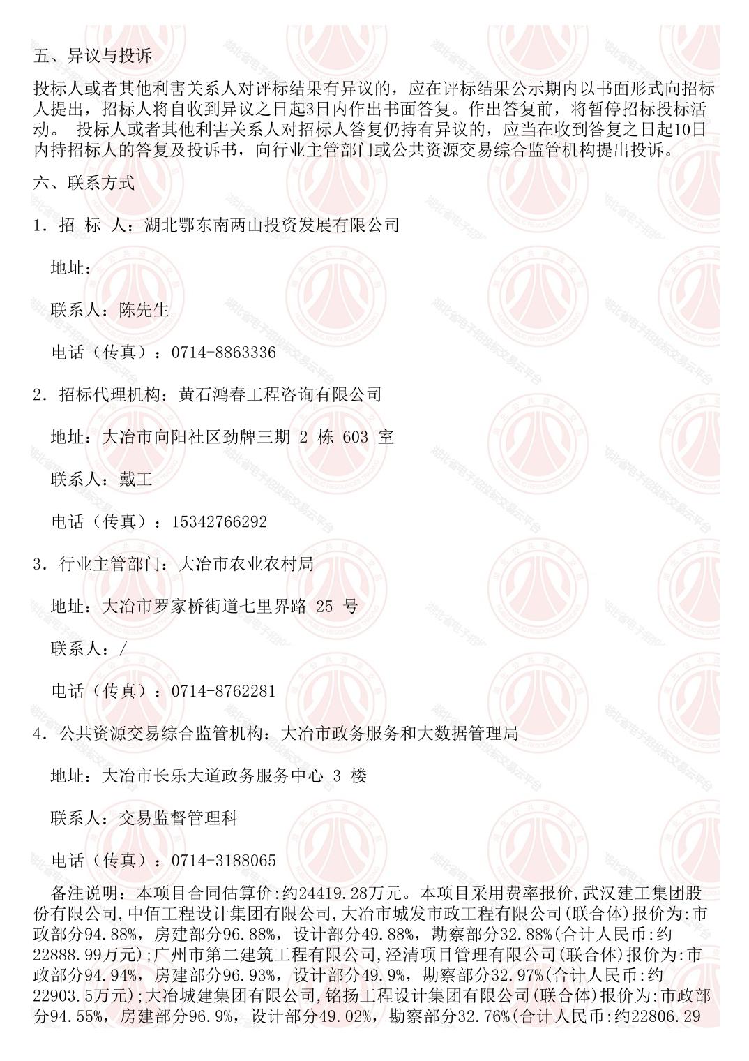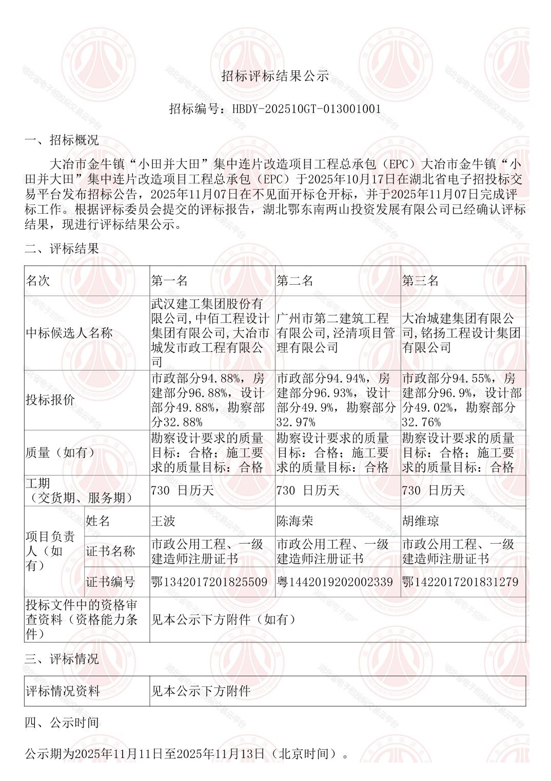 大冶市金牛镇“小田并大田”集中连片改造项目工程总承包(EPC)评标结果公示