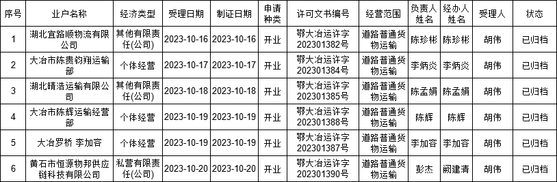 2023年道路普通货物运输行政许可结果公示(二十九)