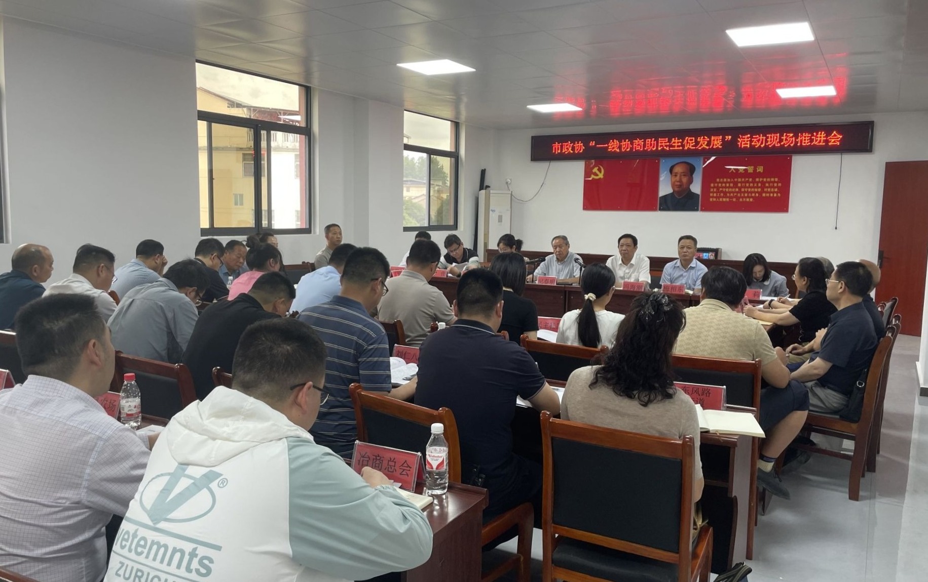 会议通报了3至5月份“一线协商助民生促发展”活动工作情况;陈贵镇、大箕铺镇、东岳路街道民主社区、罗家桥街道青港社区政协委员联络室召集人进行了交流发言。