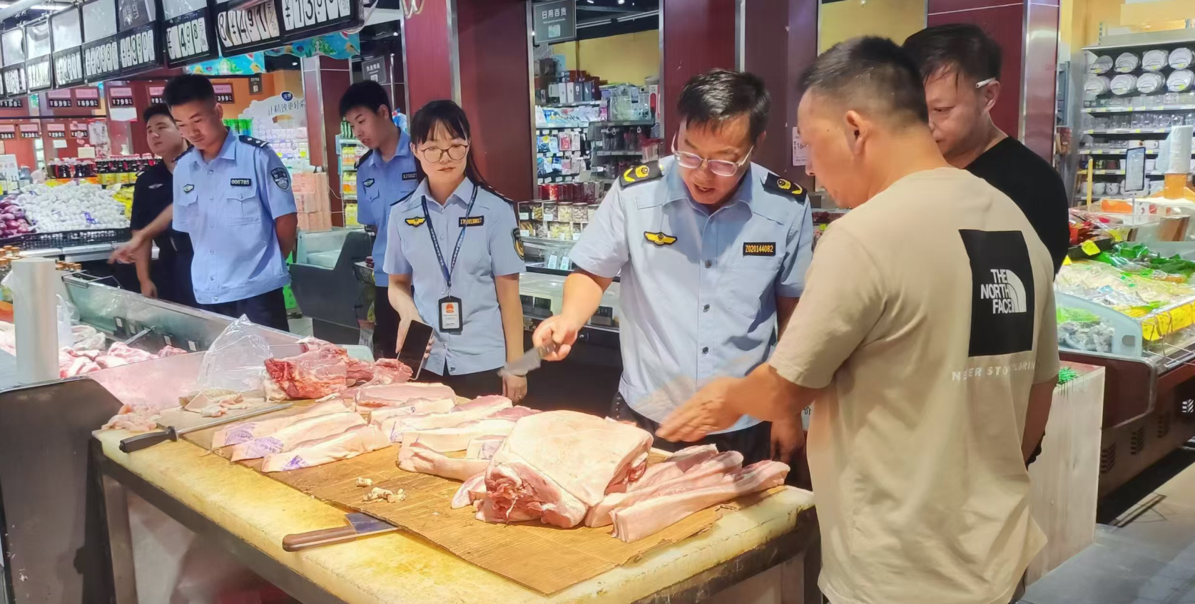 8月7日,大箕铺市场监管所联合镇派出所、畜牧中心开展严厉打击肉类产品违法犯罪专项整治行动,严防问题猪肉流入市场和餐桌,维护猪肉市场正常秩序。