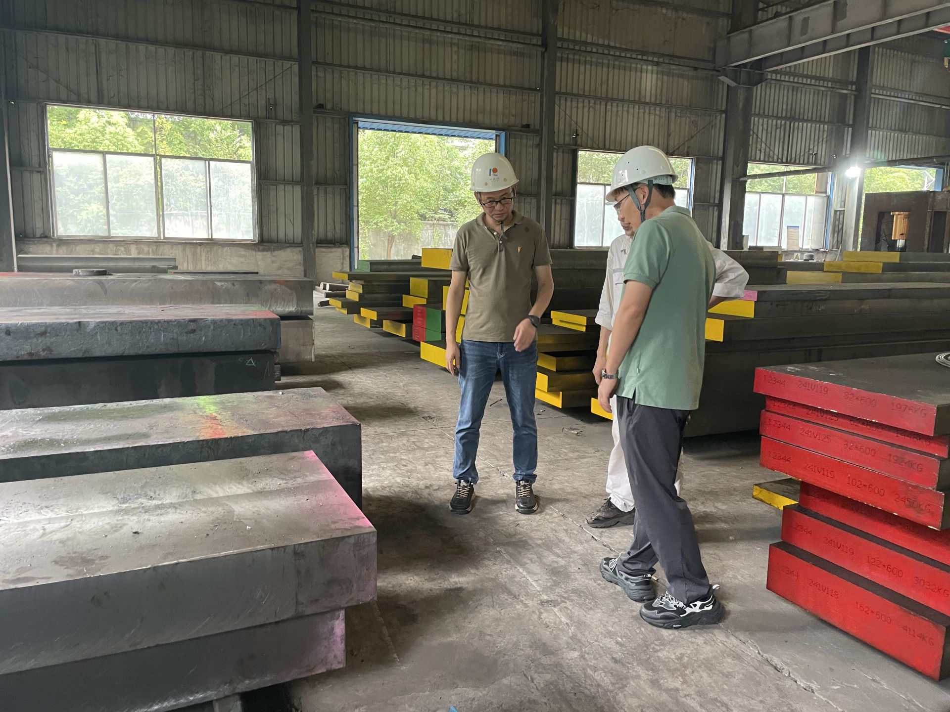 企业负责人与院校专家在模具钢试样旁讨论交流