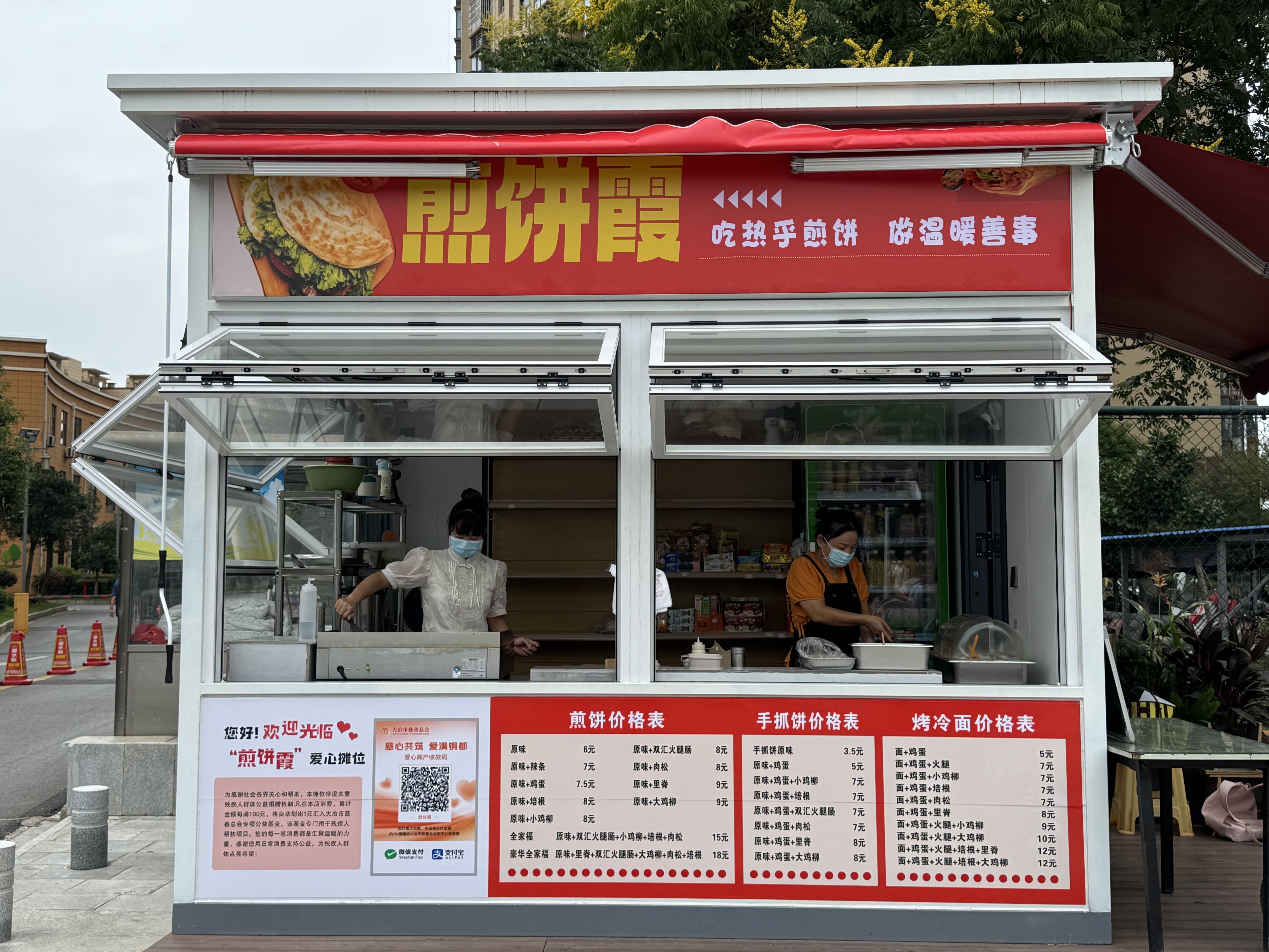 为了生计与康复两不误,在女儿的帮助下,张霞于2023年开起了煎饼摊。上午带儿子做康复,下午出摊,她开启了“两不耽误”的艰难模式。她的故事通过网络传开,社会各界随之伸出援手:大冶市政府解决了廉租房问题,市残联进行了无障碍改造,罗家桥街道为她安排了免费档口。这份来自社会的温暖,被她转化为行动,她开始免费为残疾人和环卫工人送煎饼,被大家亲切地称为“煎饼霞”。