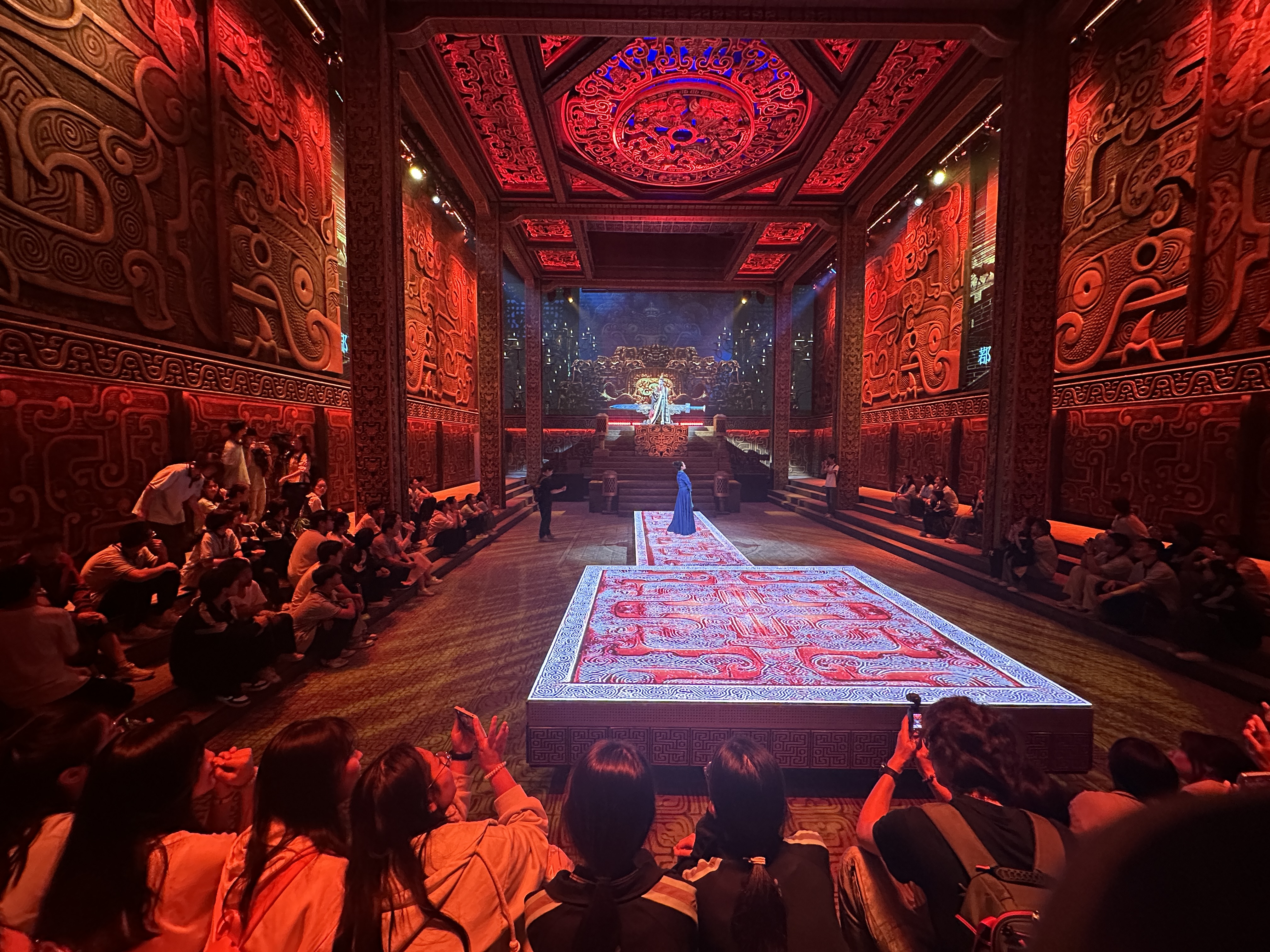 “在朋友圈看到博物馆今天免费开放,《因为青铜》戏剧还半价,就赶紧过来了。刚看完戏剧,升降舞台重现楚王冶铜的场景特别震撼,再结合直播里的讲解,对青铜文化的理解更透彻了,很不错。”市民江曼忍不住为这场体验点赞。