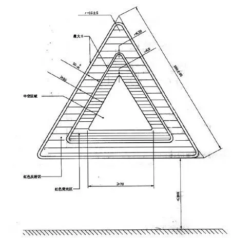 由支架支撑的三角平面反光器构成,支架必须保证标志牌能稳固竖立。