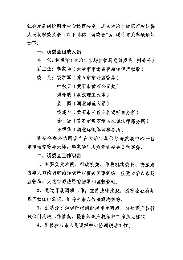 关于成立大冶市知识产权纠纷人民调解委员会的通知3.jpg