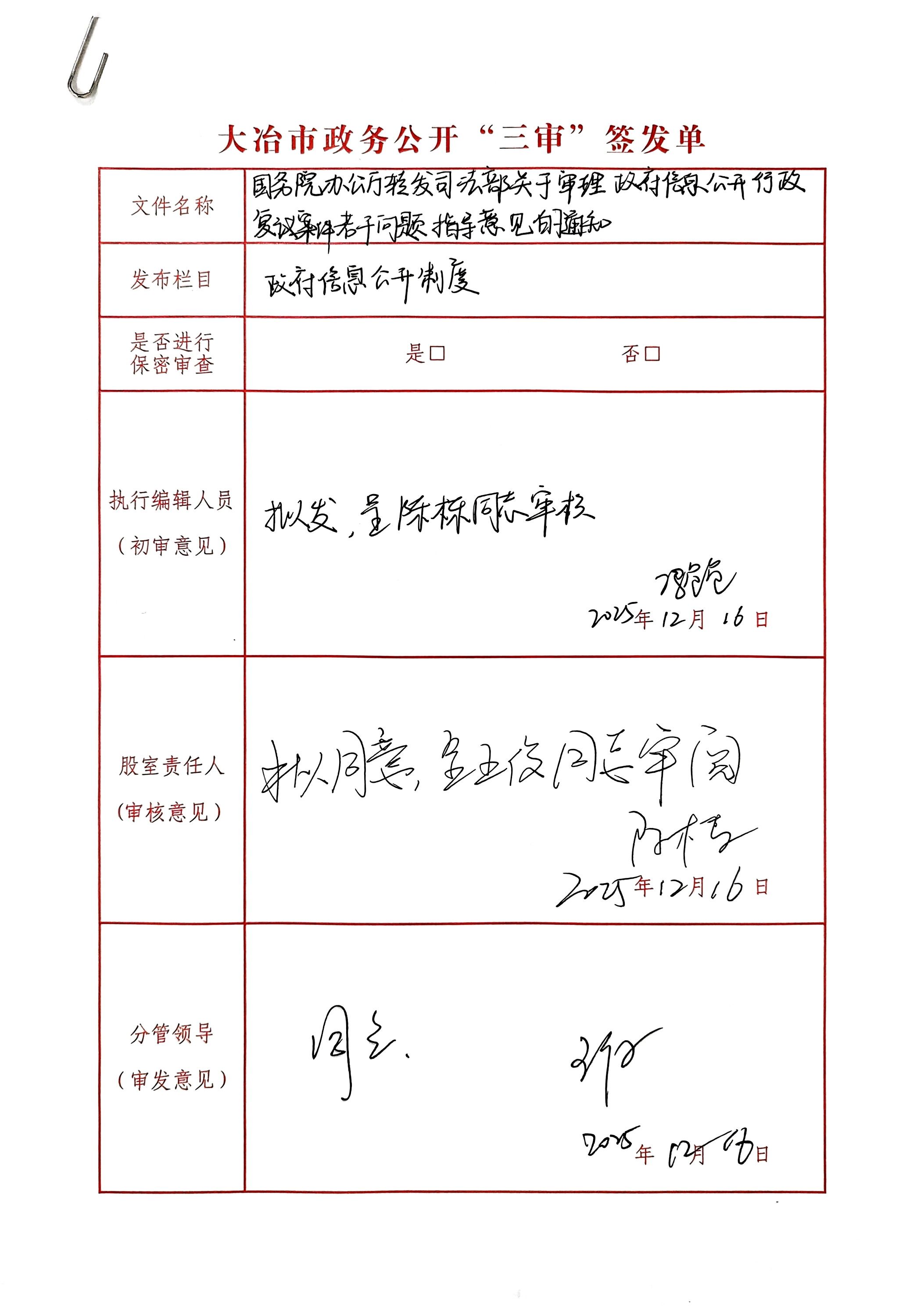 关于审理政府信息公开行政复议案件若干问题的指导意见