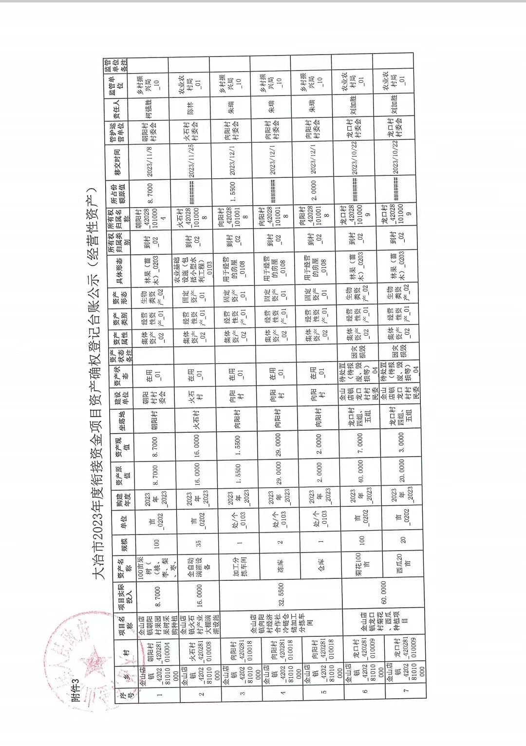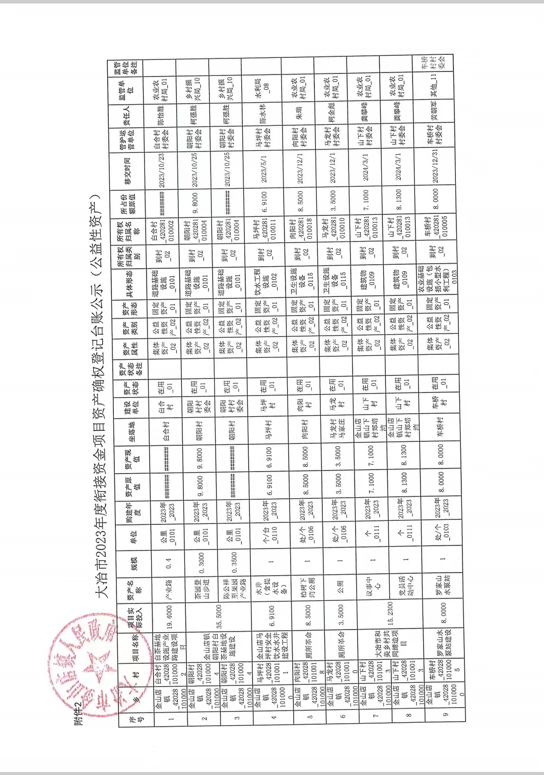 大冶市2023年度衔接资金项目资产确权登记台帐