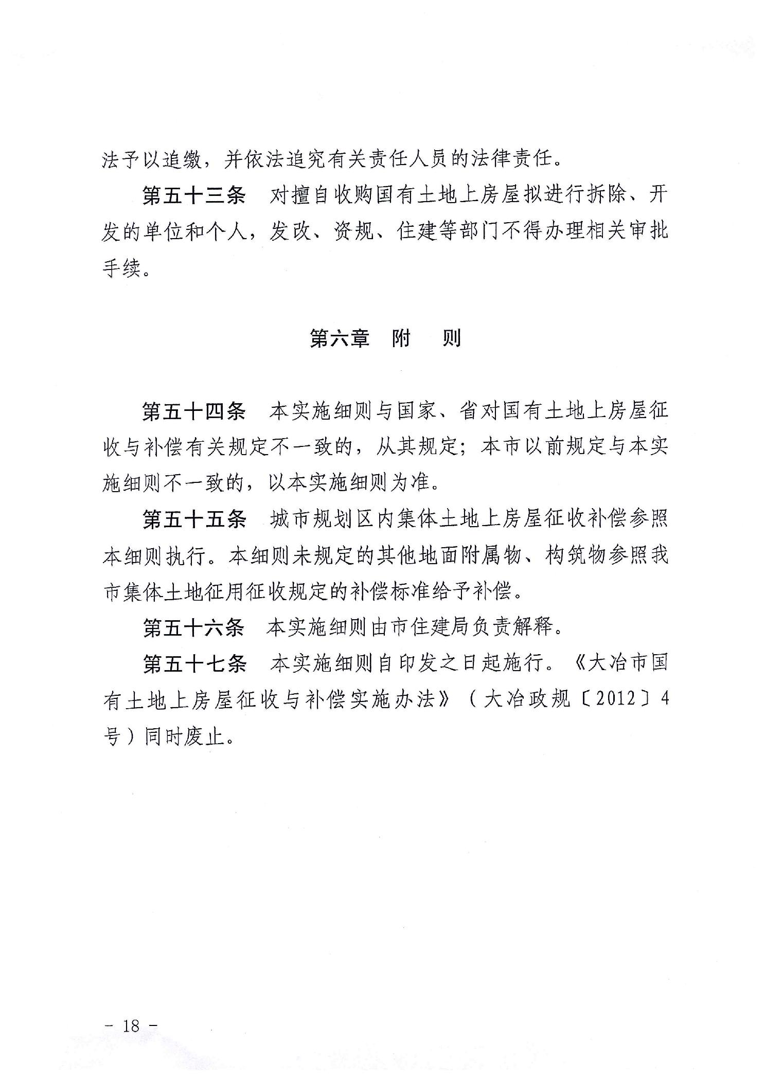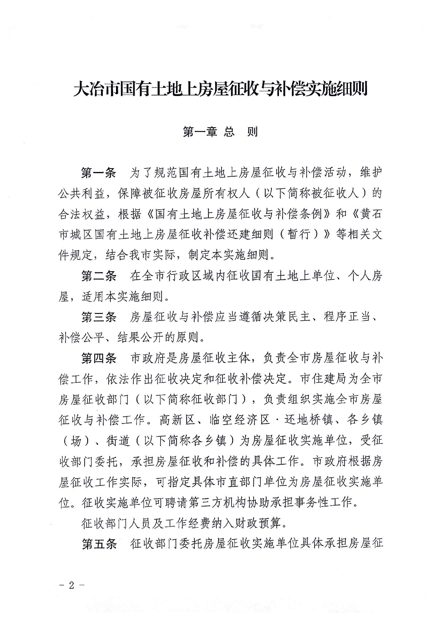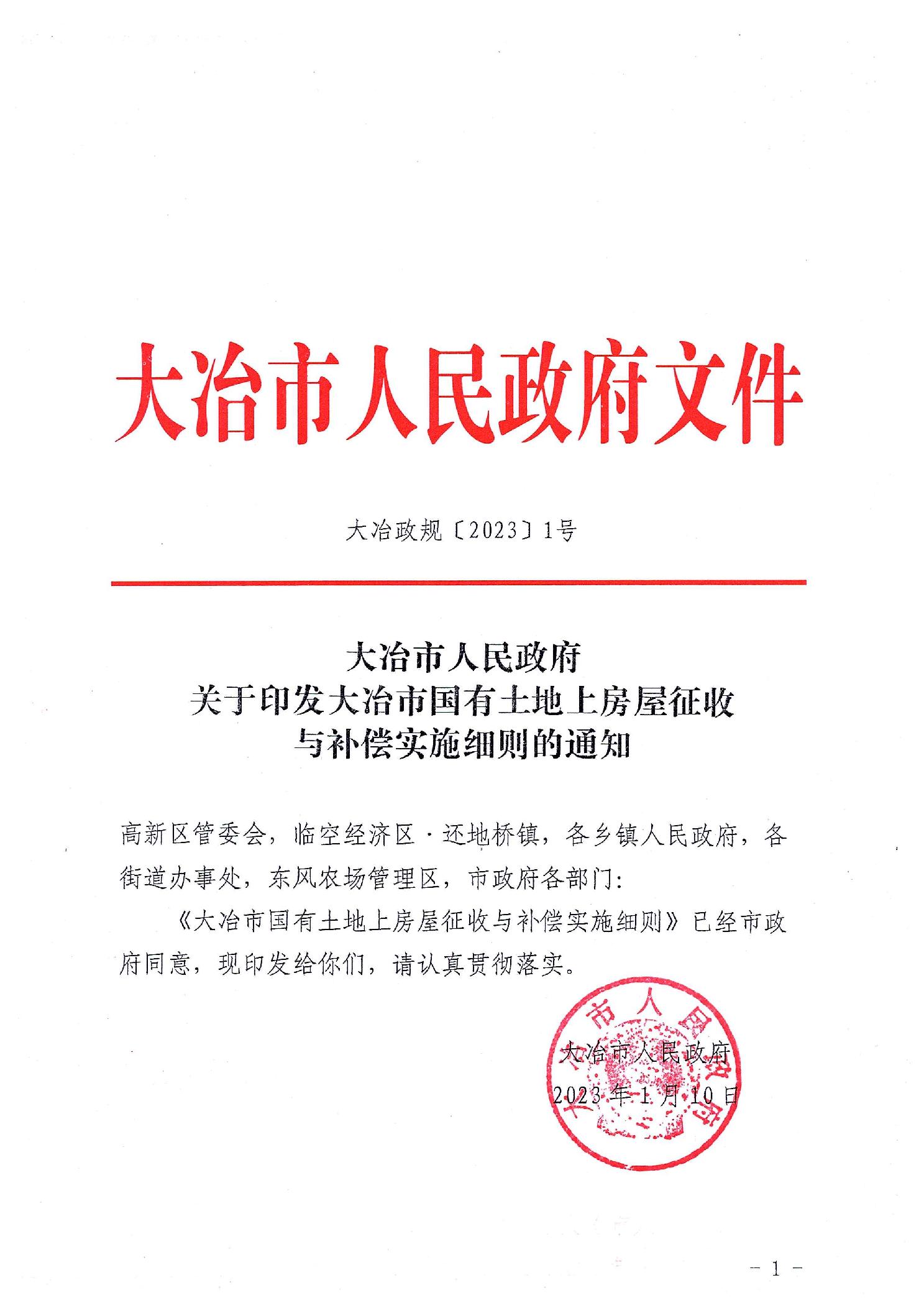 大冶政规〔2023〕1号关于印发《大冶市国有土地上房屋征收与补偿实施细则》的通知