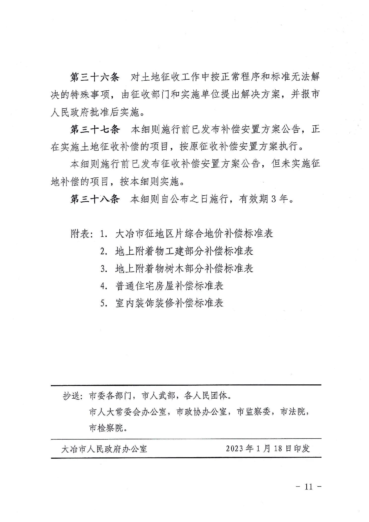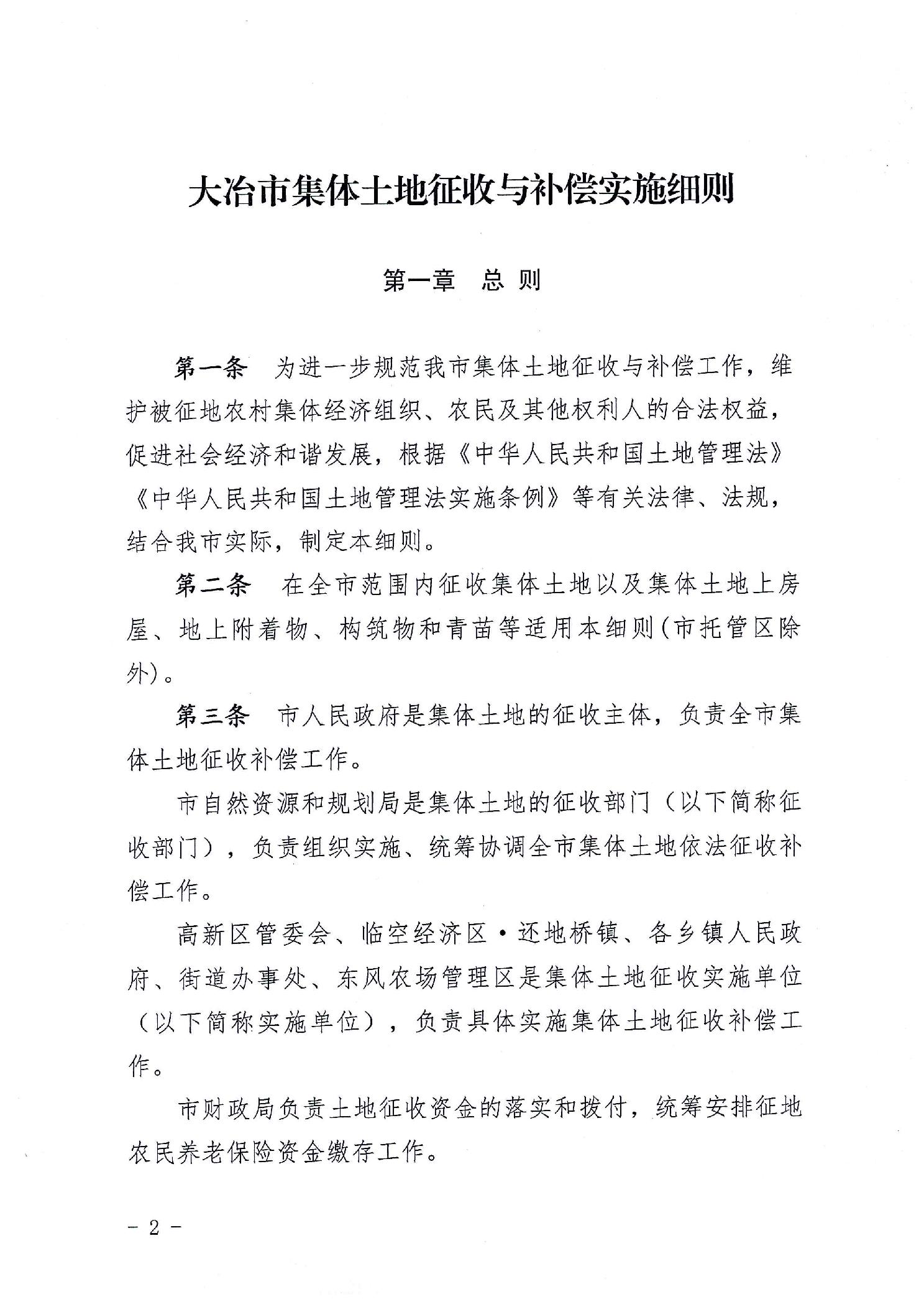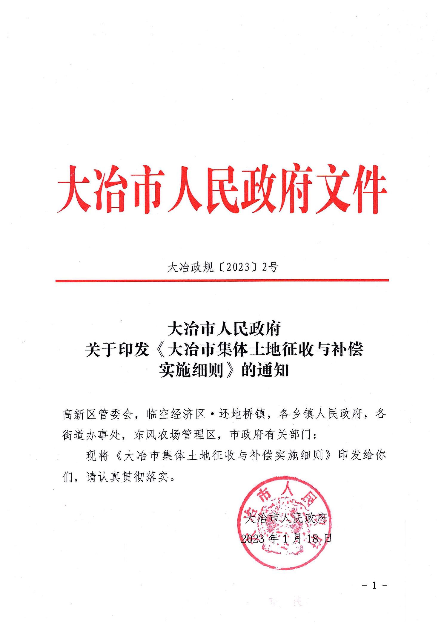 大冶政规【2023】2号大冶市人民政府关于印发《大冶市集体土地征收与补偿 实施细则》的通知