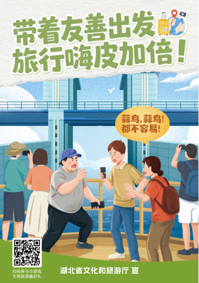 请体谅旅游服务行业从业人员的辛劳,与他人礼貌交流,遇到问题时,理性协商,可拨打景区服务电话寻求帮助。在他人有需要时,伸出援手,一份善意的提醒、一次小小的礼让,都能让春节的旅途充满温情。