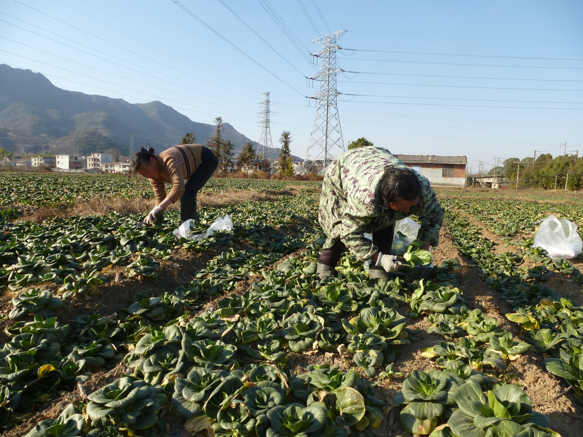 15日,记者来到大箕铺镇进军生态农业科技发展有限公司看到,一眼望不到边的露天蔬菜种植基地里,小白菜、包菜等蔬菜长势喜人,工人们分工明确,正在加紧采收、分拣、打包,现场一派繁忙景象。