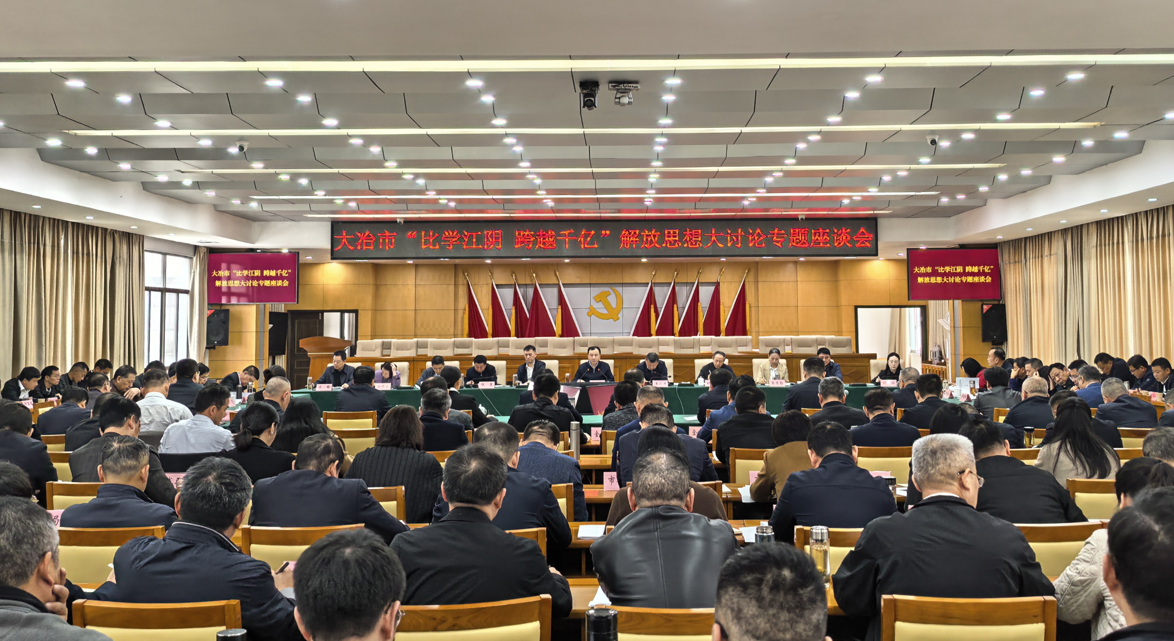 11月7日,我市“比学江阴 跨越千亿”解放思想大讨论专题座谈会召开,市委书记孙辄出席会议并强调,要认真学习贯彻党的二十届四中全会精神,系统总结“比学江阴争一流、对标先进跨千亿”活动成效,进一步在对标先进中找差距、在思想碰撞中明方向、在交流互鉴中聚共识,切实把全会精神和学习成果转化为推动大冶“聚力建支点、冲刺千亿市”的强大动力和实际成效。市委副书记、市长潘小进主持会议。