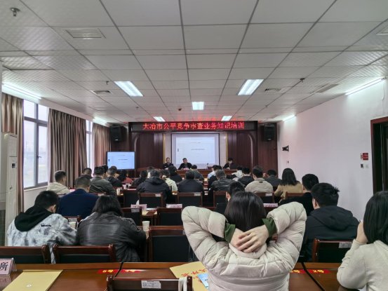 (供稿人:刘传清)3月26日上午,大冶市市场监管局组织召开了全市公平竞争审查业务培训会,全市27家公平竞争审查联席会议成员单位联络员及14个市场监管所副所长等共50人参会。